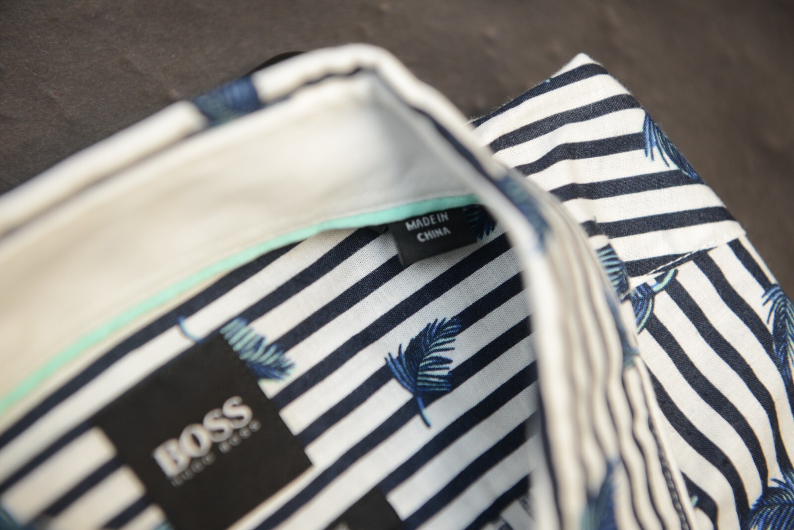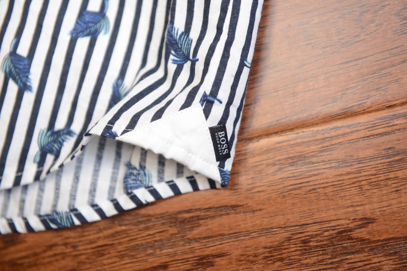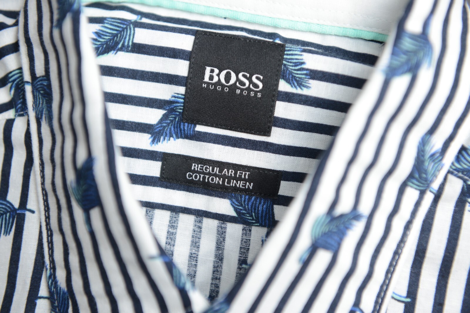 HUGO BOSS Herren Luka Kurz rmel Regular Fit Federn Aufdruck Baumwolle / Leinen
