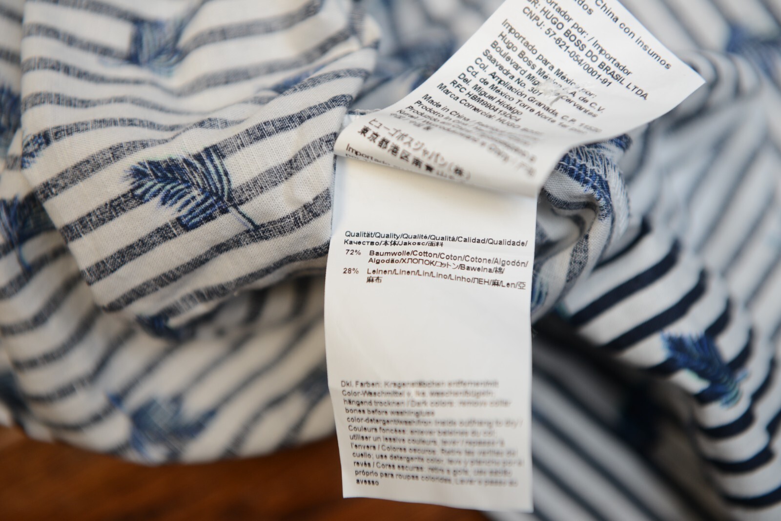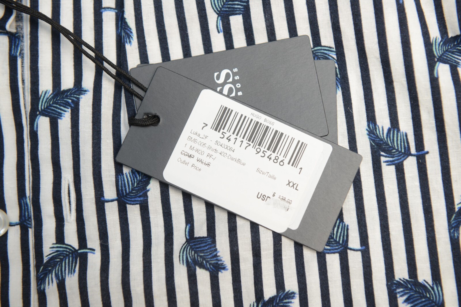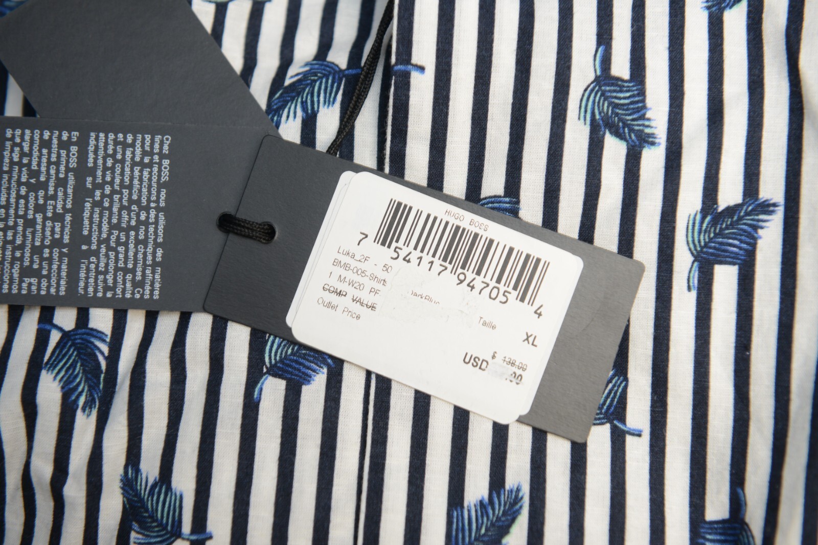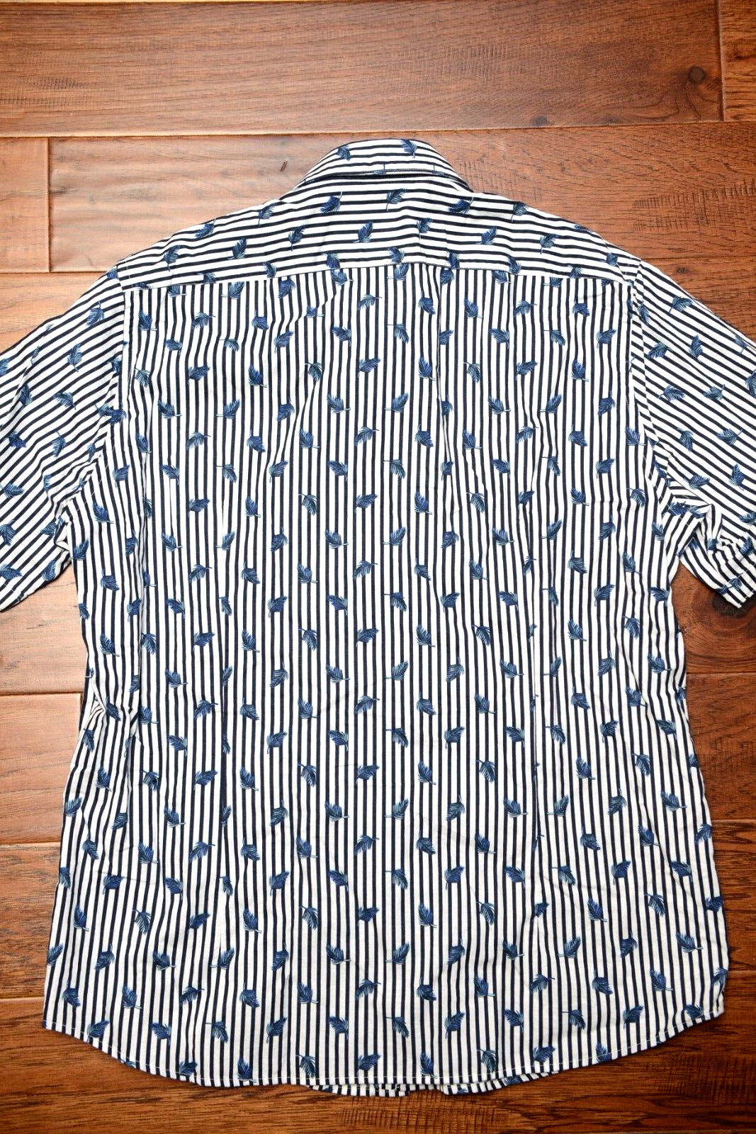 NWT Hugo -Chef Mens Luka Kurzarmel regularer Federfeder -Druck Baumwolle/Leinenhemd