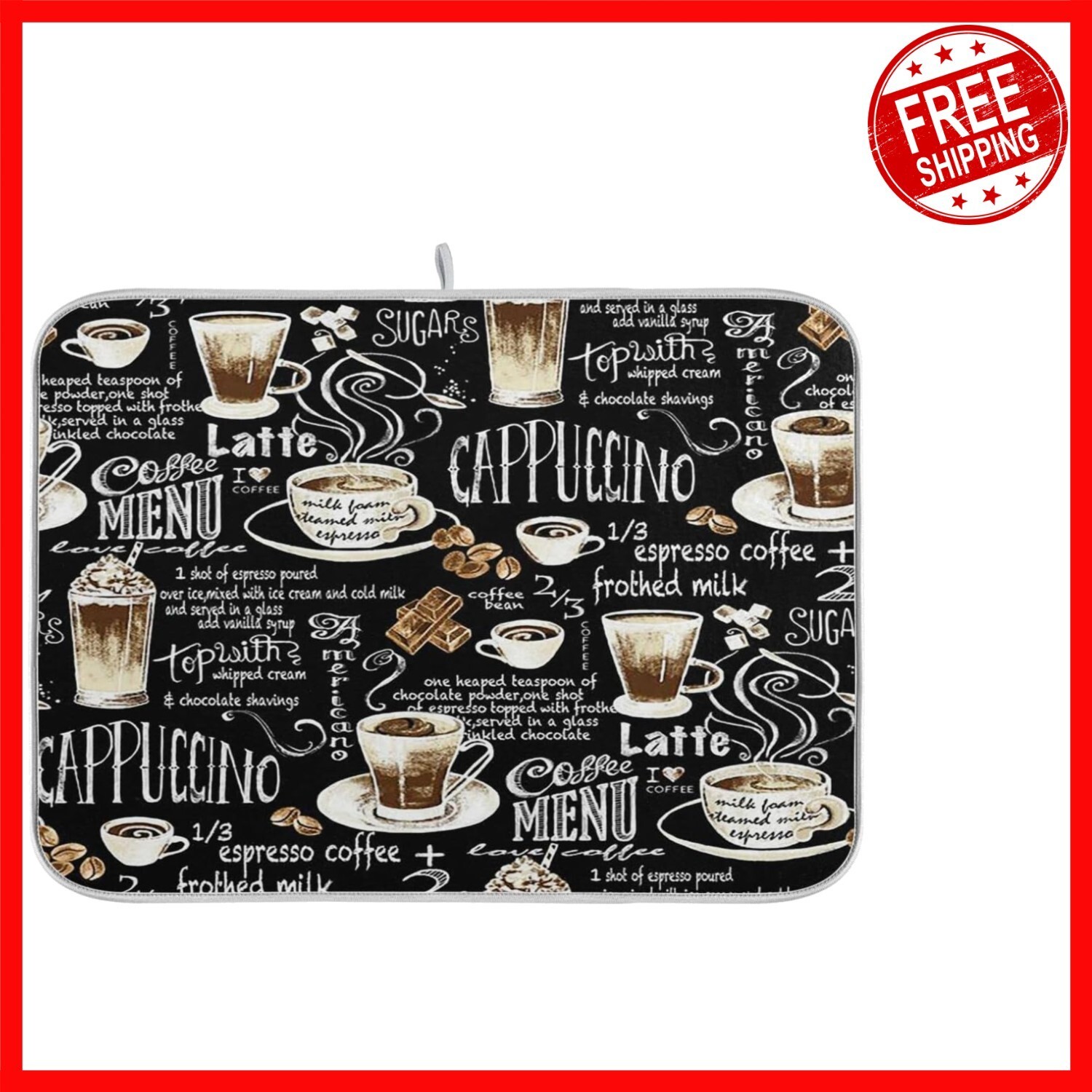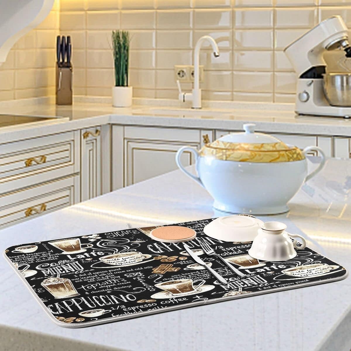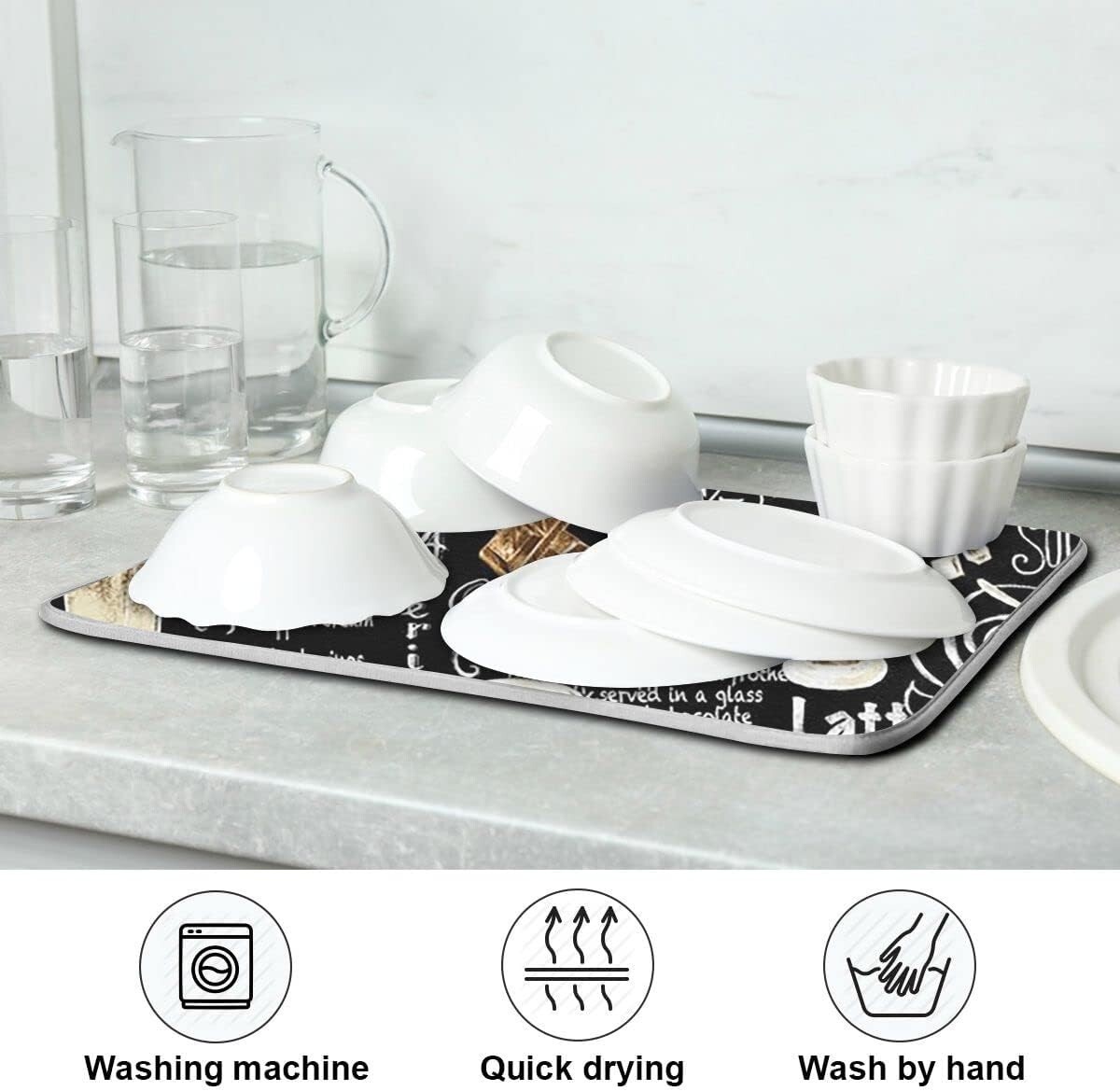 Reversible Microfiber Dish Drying Mat in Coffee Black - Perfect for Kitchen Use