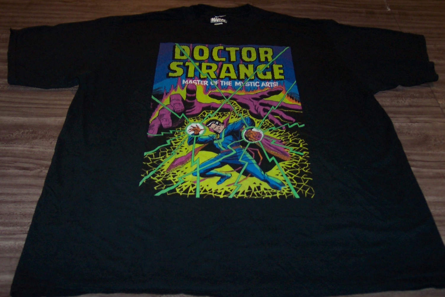 This is a Doctor Strange Master Of The Mystic Arts Marvel Comics T-shirt. It Has No size tag, but it is a size 2XL. It is 25 inches from armpit to armpit and 31 inches in length. It is in Great condition. It is CLEAN! No Stains, Tears, or Defects. Combine auctions to save on shipping. AD