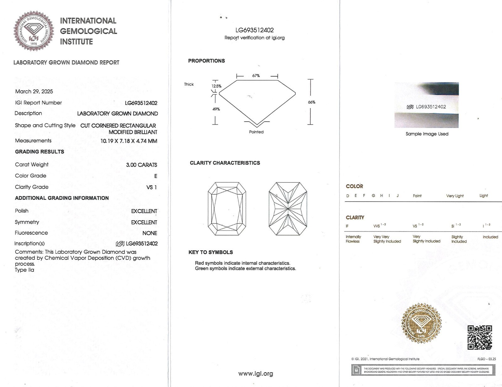 Igi 2.67 Ctw Radiante Brillante Corte E-VVS2 Laboratorio Crecido Anillo con