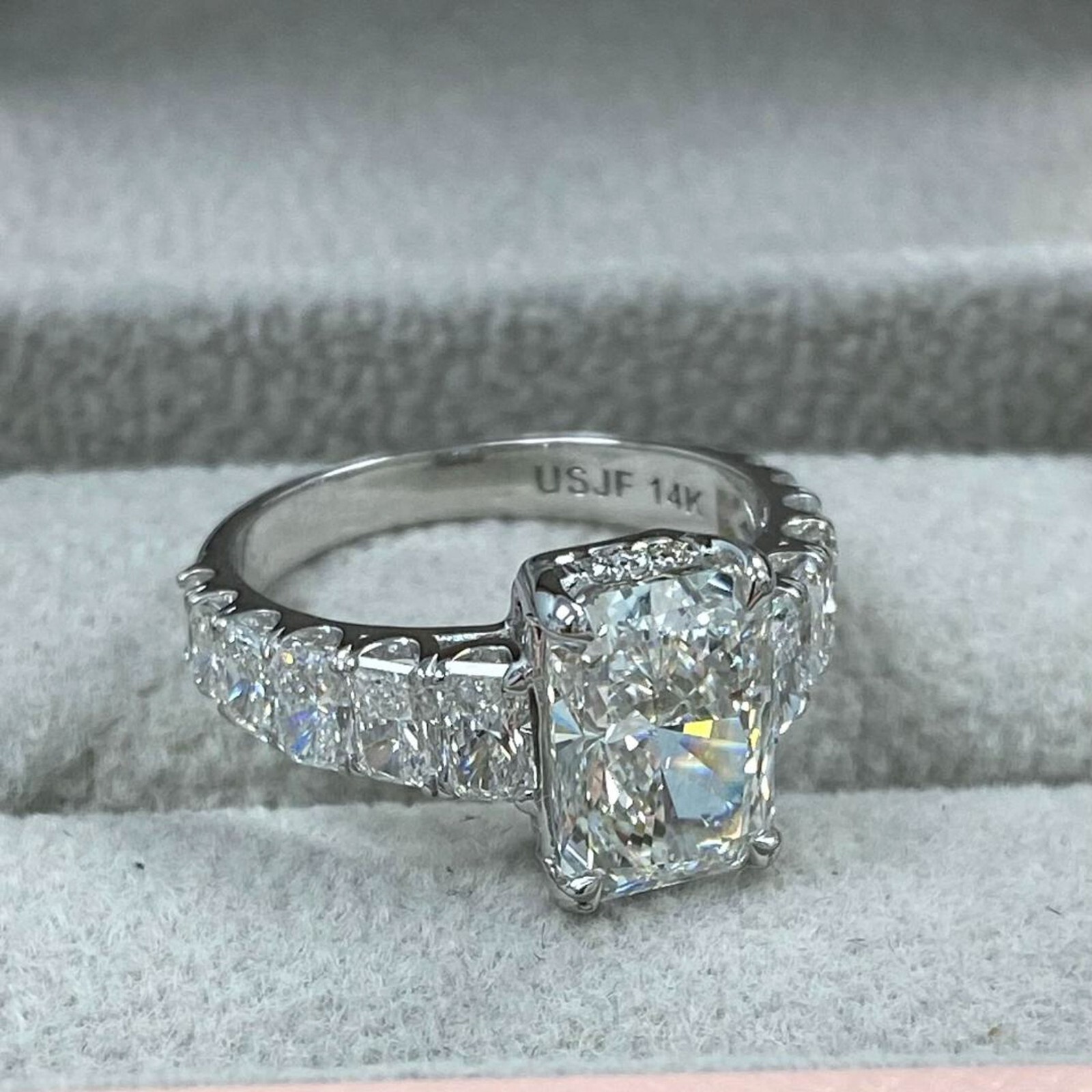 5.28 CTW (3,00) Radiant Brilliant Cut Lab Grown Diamond Ring 14K Or blanc