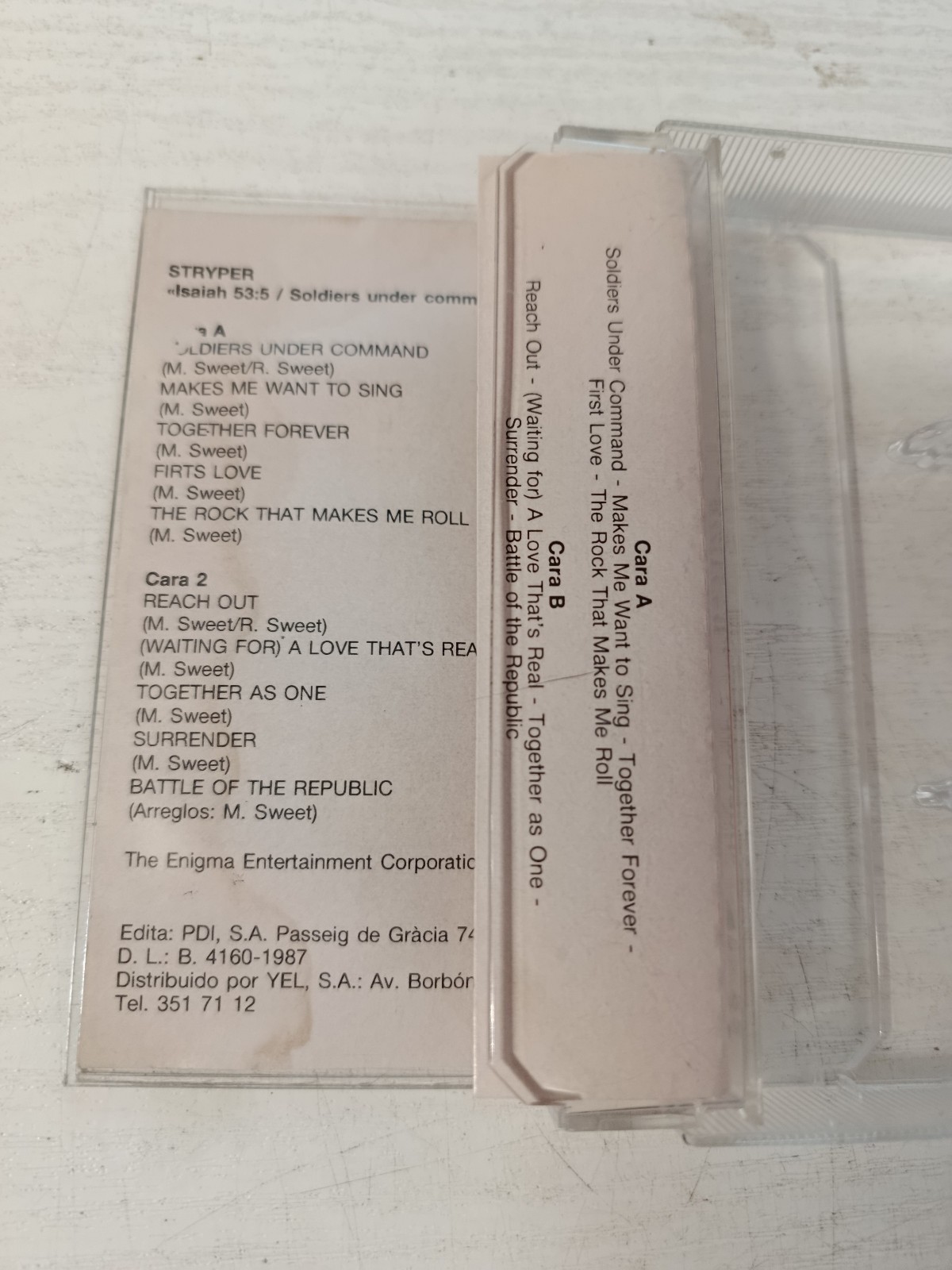 Stryper Cassette, Soldiers Under Command, ENIGMA Records 1987, heavy metal, Christian metal, vintage tape, cassette collection, Christian rock, hard rock 80s, Spanish edition, retro music