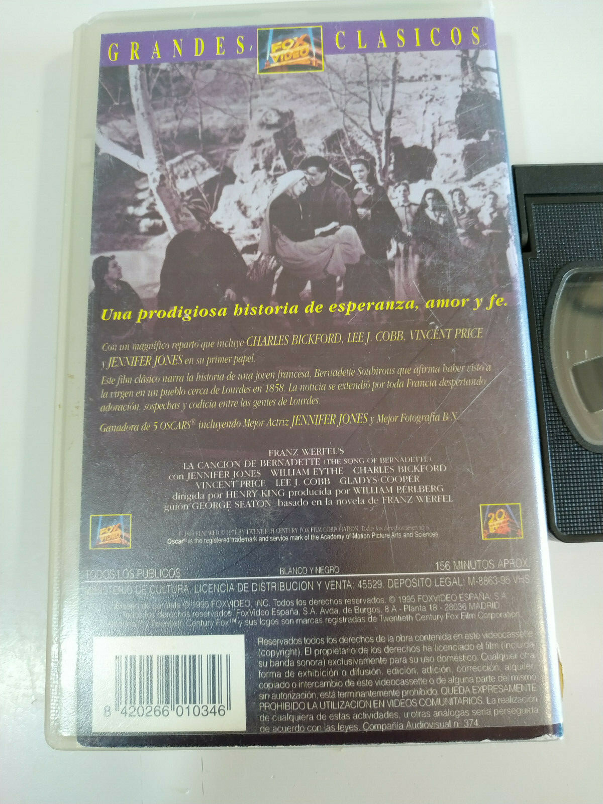 La Cancion Di Bernadette Jennifer Jones William Eythe - VHS Cinta Tape Español