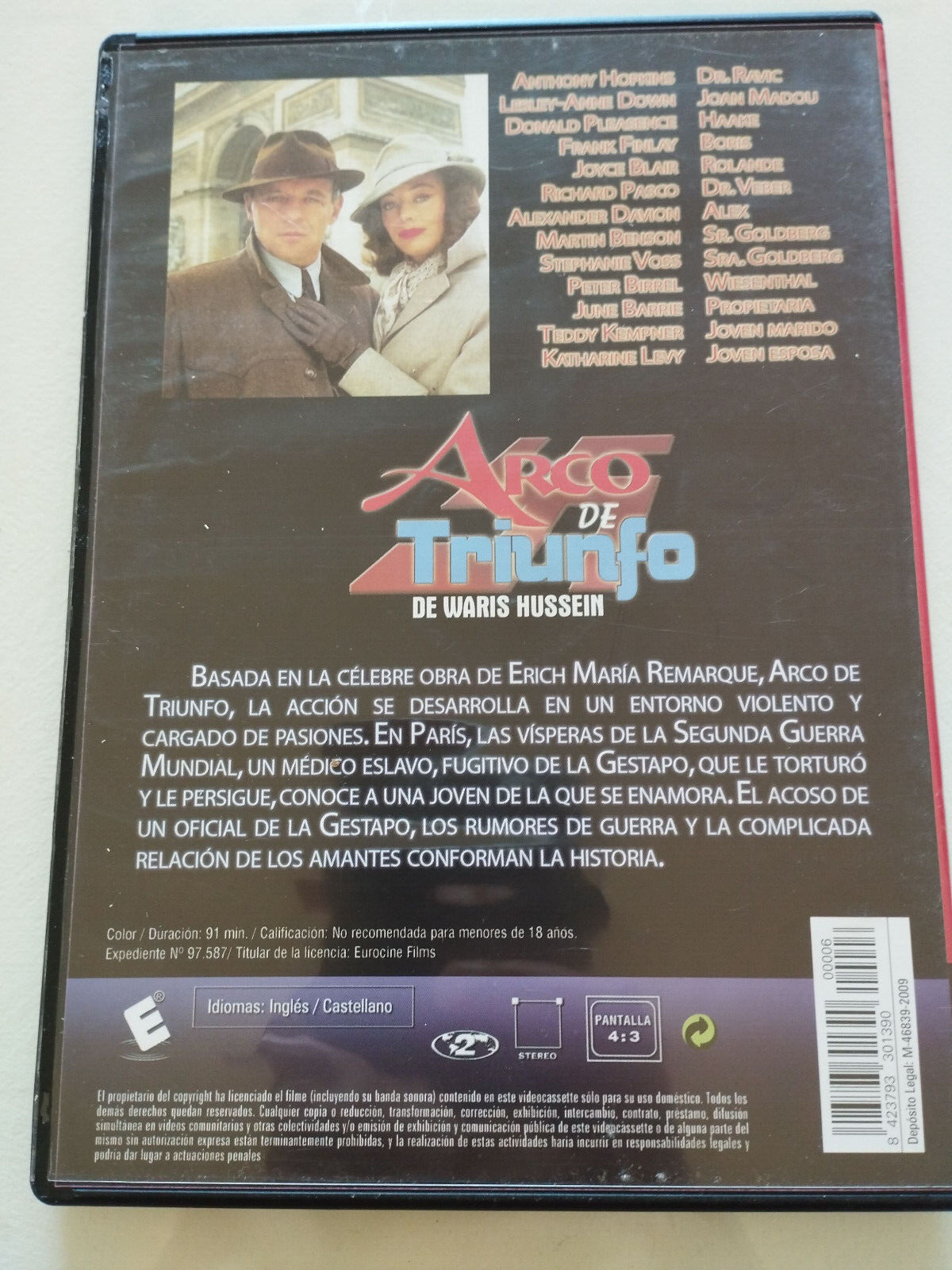 Arc de Triomphe Waris Hussein Anthony Hopkins DVD slim Spanish English Region 2