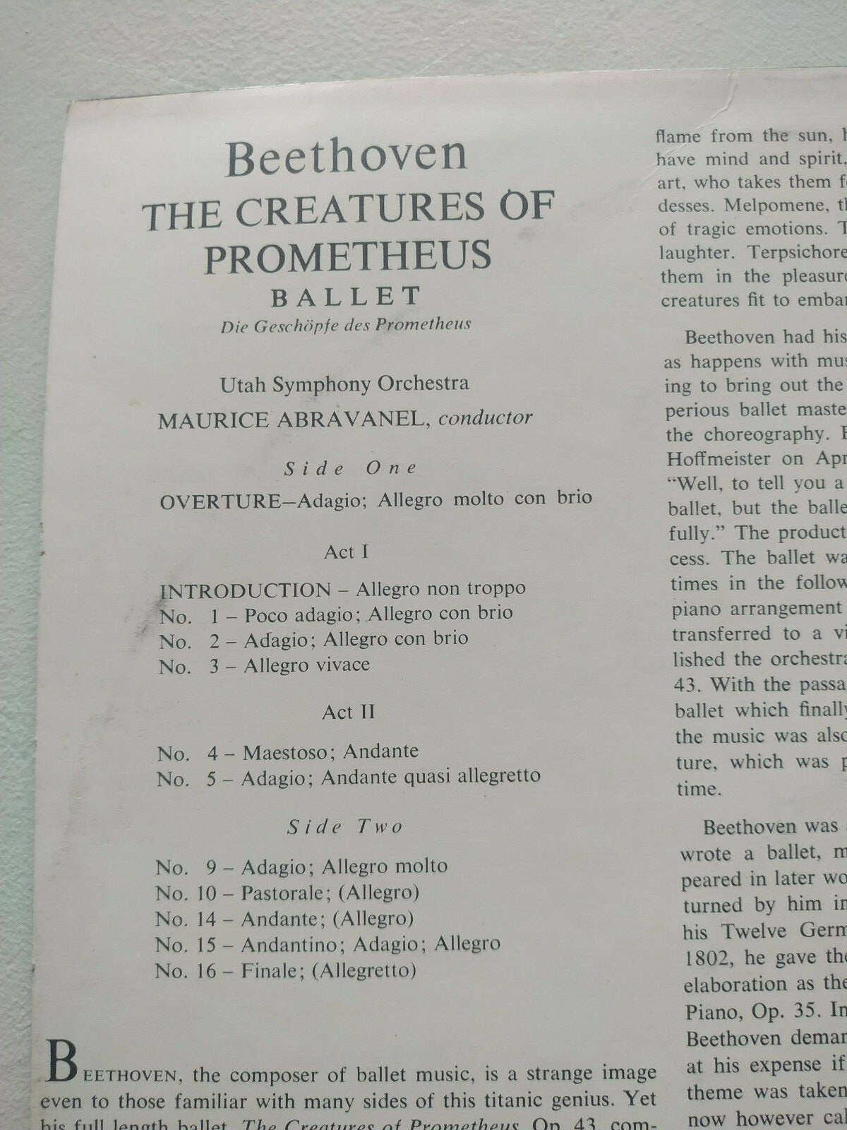 Beethoven The Creatures of Prometheus Abravanel 1965 UK - LP 12" vinyl VG/VG