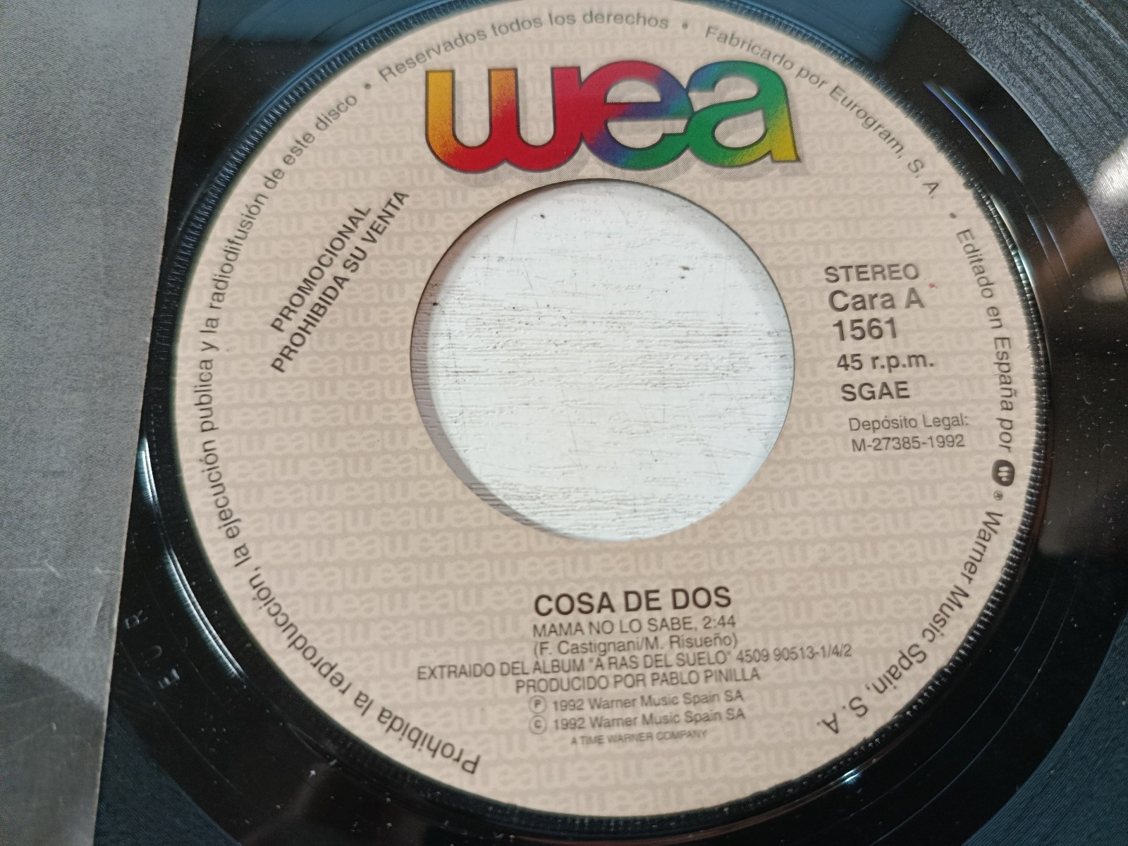 de dos , Mamano He knows, singlevinyl 7 inches, promo, Warner Music Spain, Wea 1992, promotional specimen, Spanish pop,vinyl 90s, radiophormula, musical collecting, Pablo Pinilla, rasdel soil, rarityvinyl