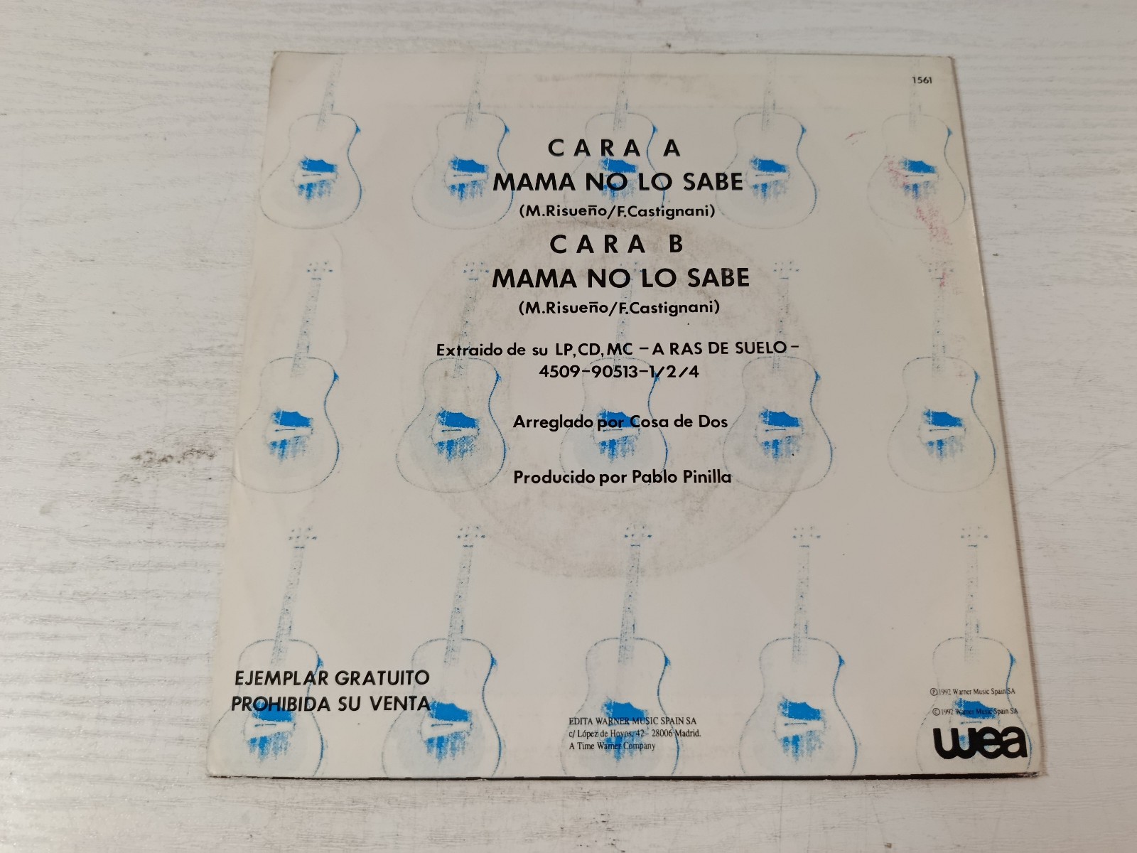 Rare promotional copy del Spanish duo de dos, published by Warner Music in 1992. It contains el theme "Mama no know" on both sides, extracteddel Album "at Rasdel floor". Difficult piece de find, ideal para collectorsdel Spanish popdelos 90.