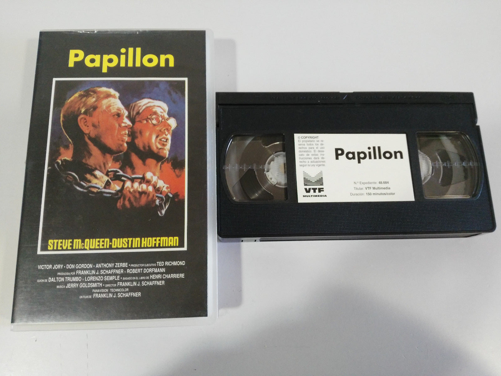 PAPILLON STEVE McQUEEN DUSTIN HOFFMAN FRANKLIN SCHAFFNER VHS TAPE TAPE ESPAGNOL DE AUTHENTIQUE OBJET DE COLLECTION AUDIO : ESPAGNOL