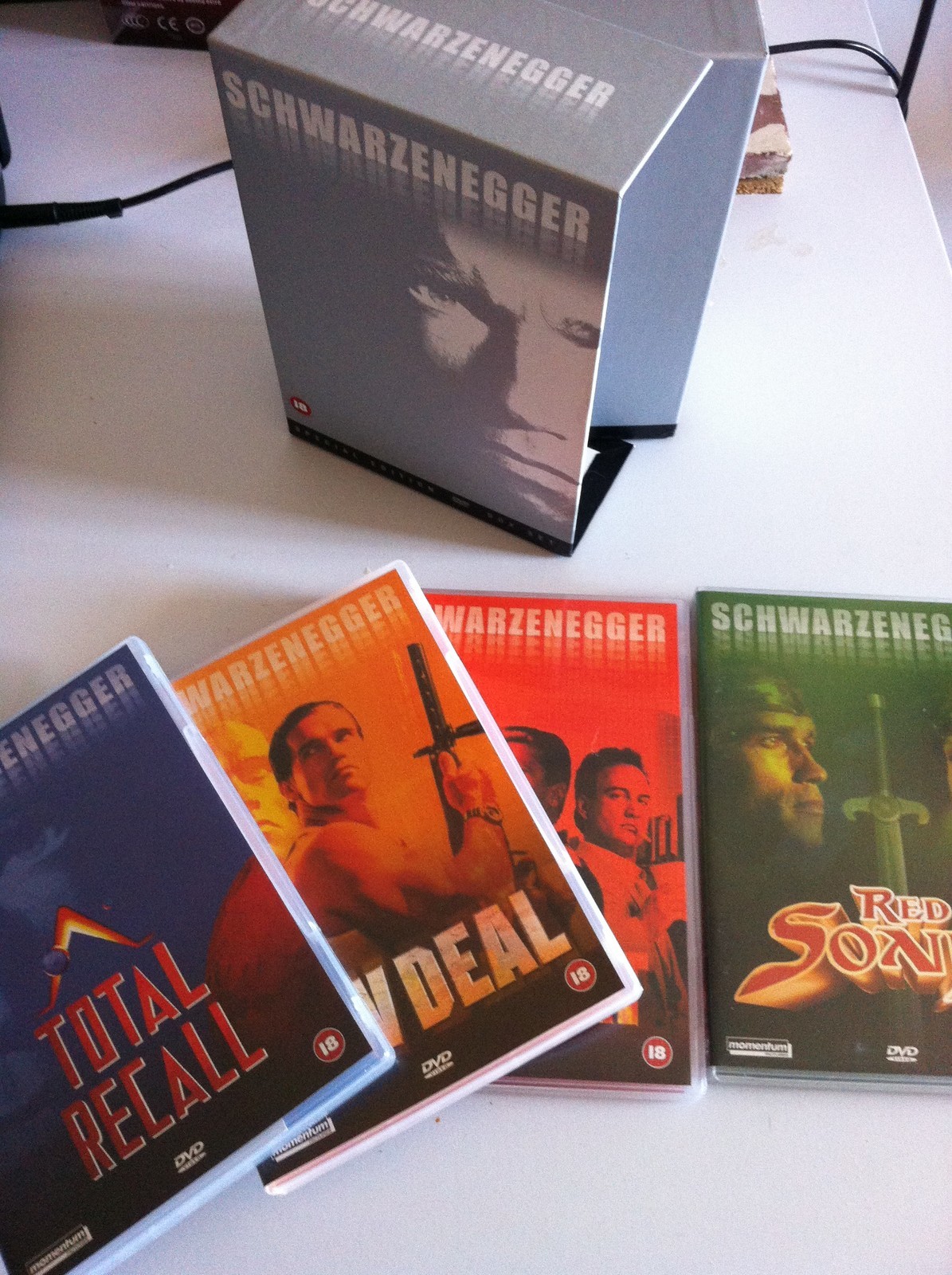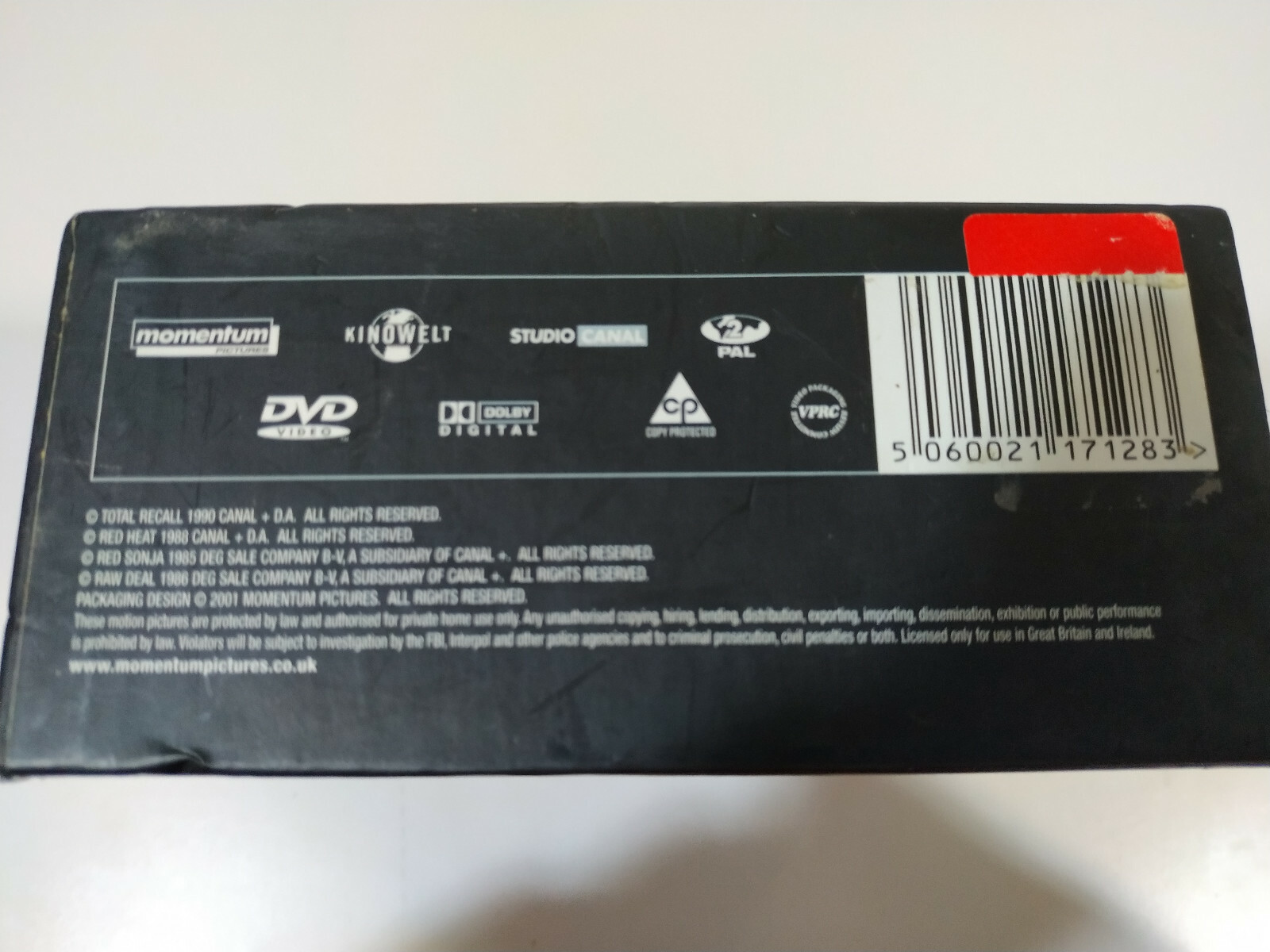 Dieses Box -Set enthalt die Titel: 'Total Recall', 'Raw Deal', 'Red Heat' und 'Red Sonja'.