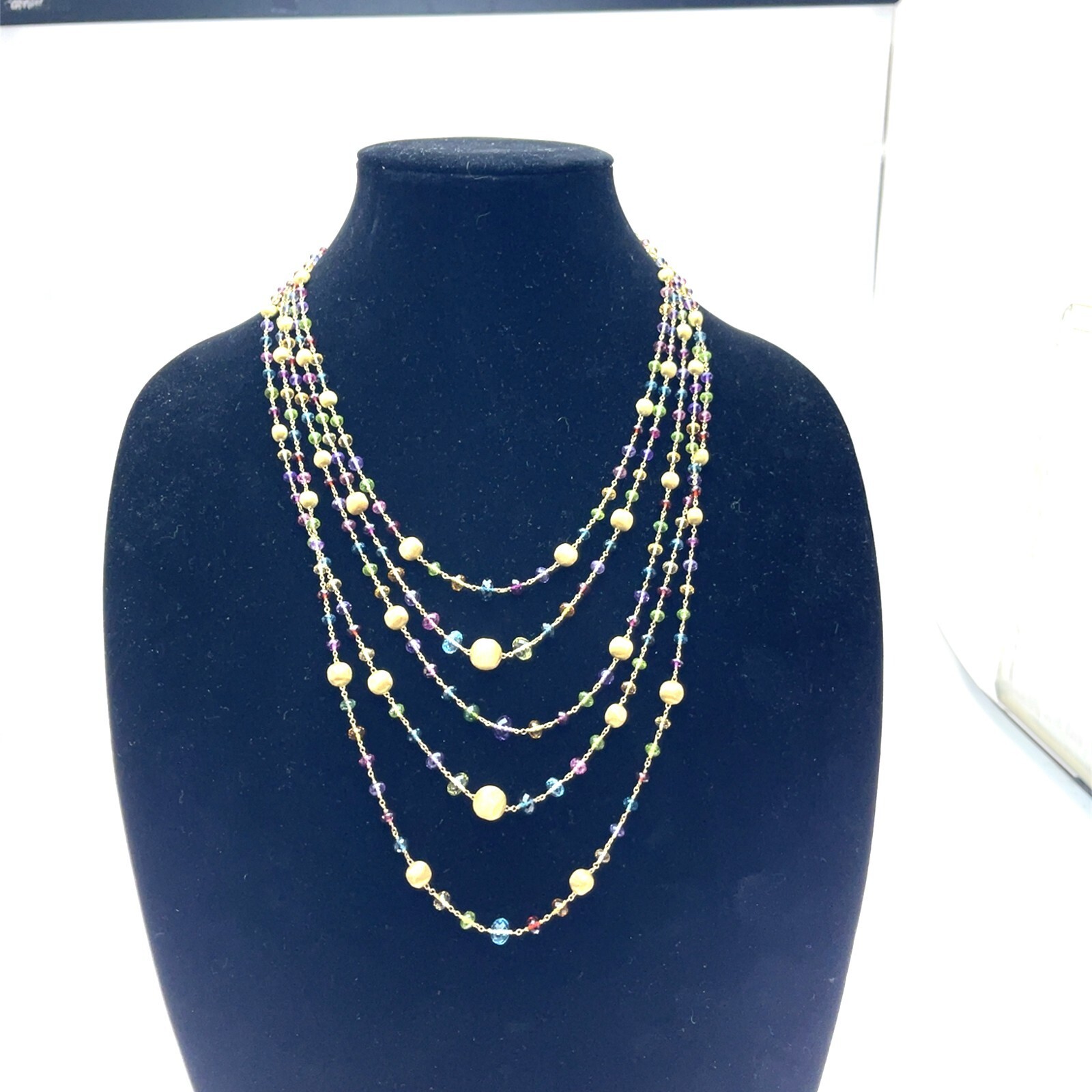Marco Bicego 18k Gelbgold Abgestuft Fünf Stränge Perlen Edelstein Kette 45.7cm
