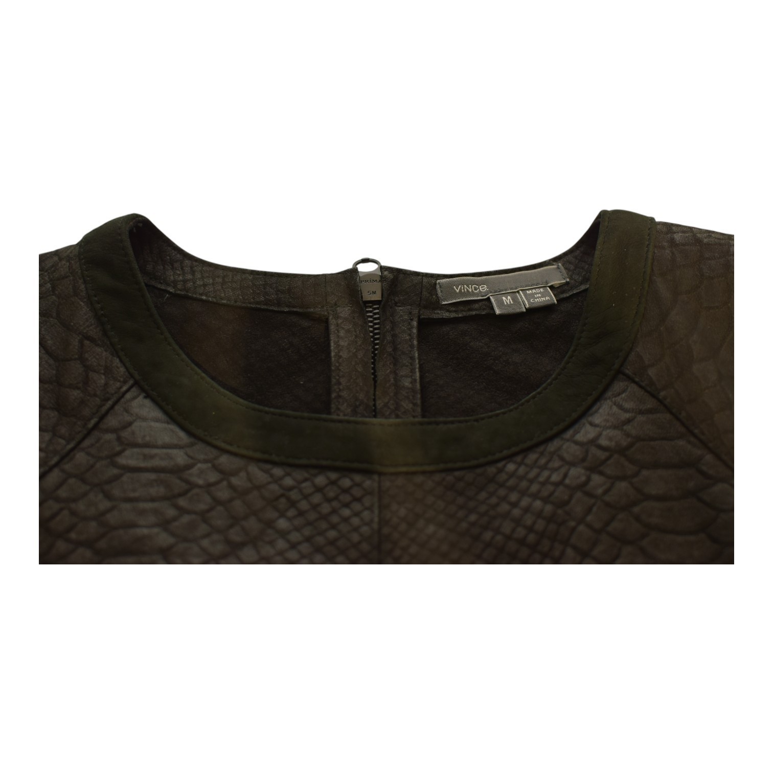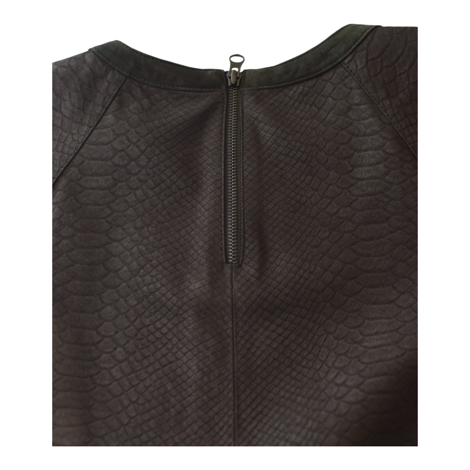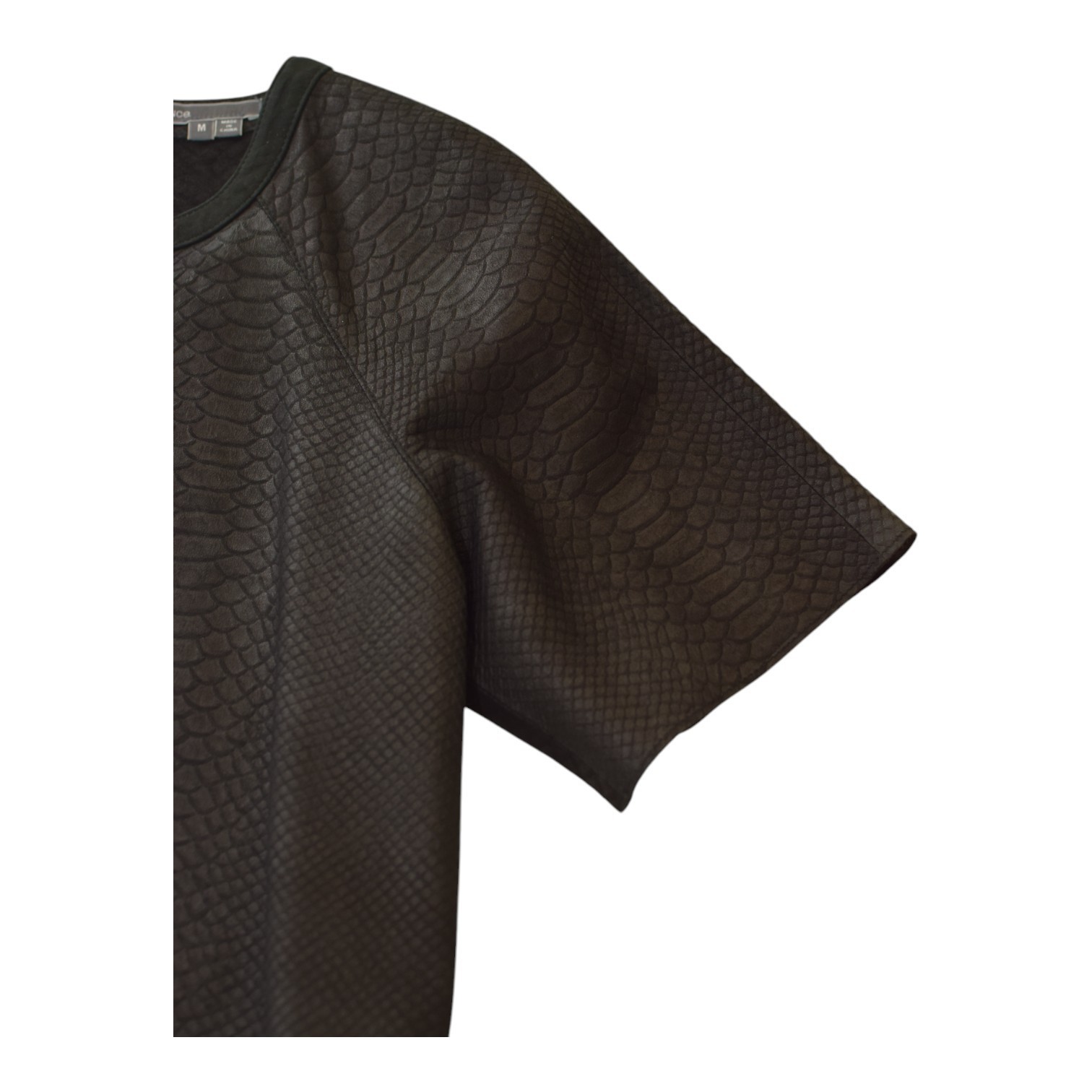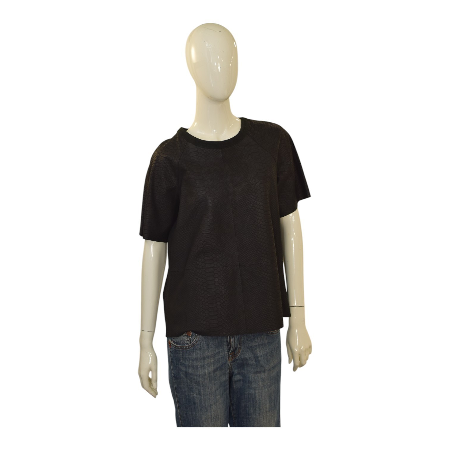 Vince Black Leather Snake Embossed Back Zipper Short Sleeve Top size M