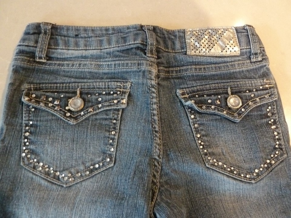 Almost Famous Girls Jeans size 10 Rhinestone Embellished pockets W 24 I 24 R 7.5