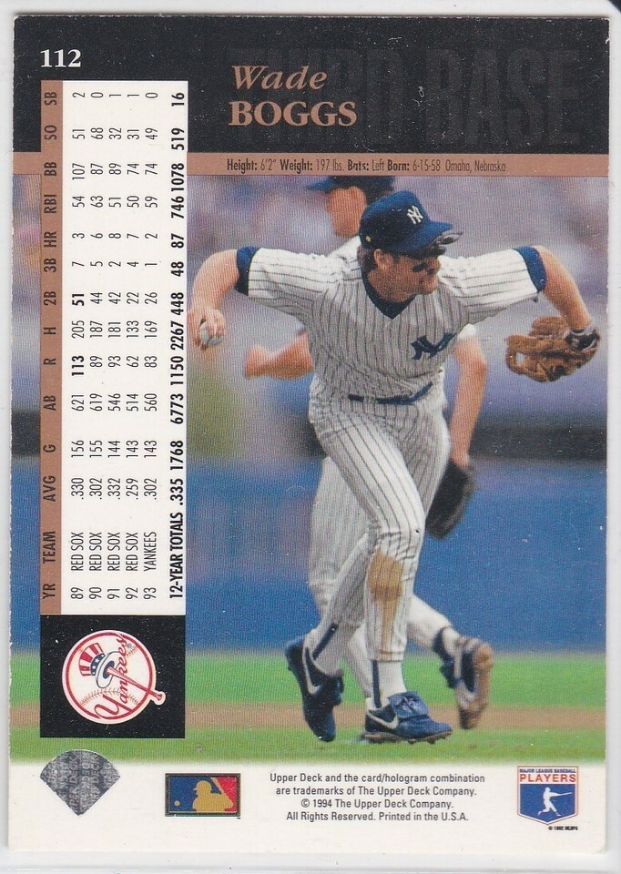 G) 1994 Upper Deck Baseball Trading Card - Wade Boggs #112