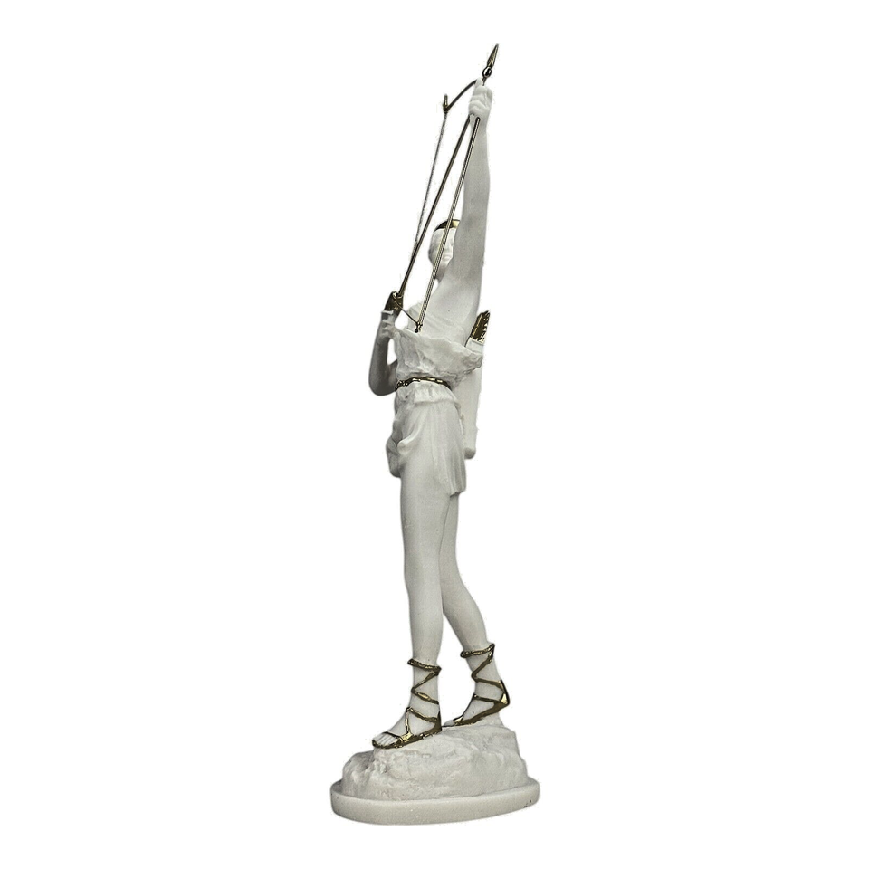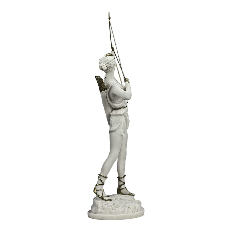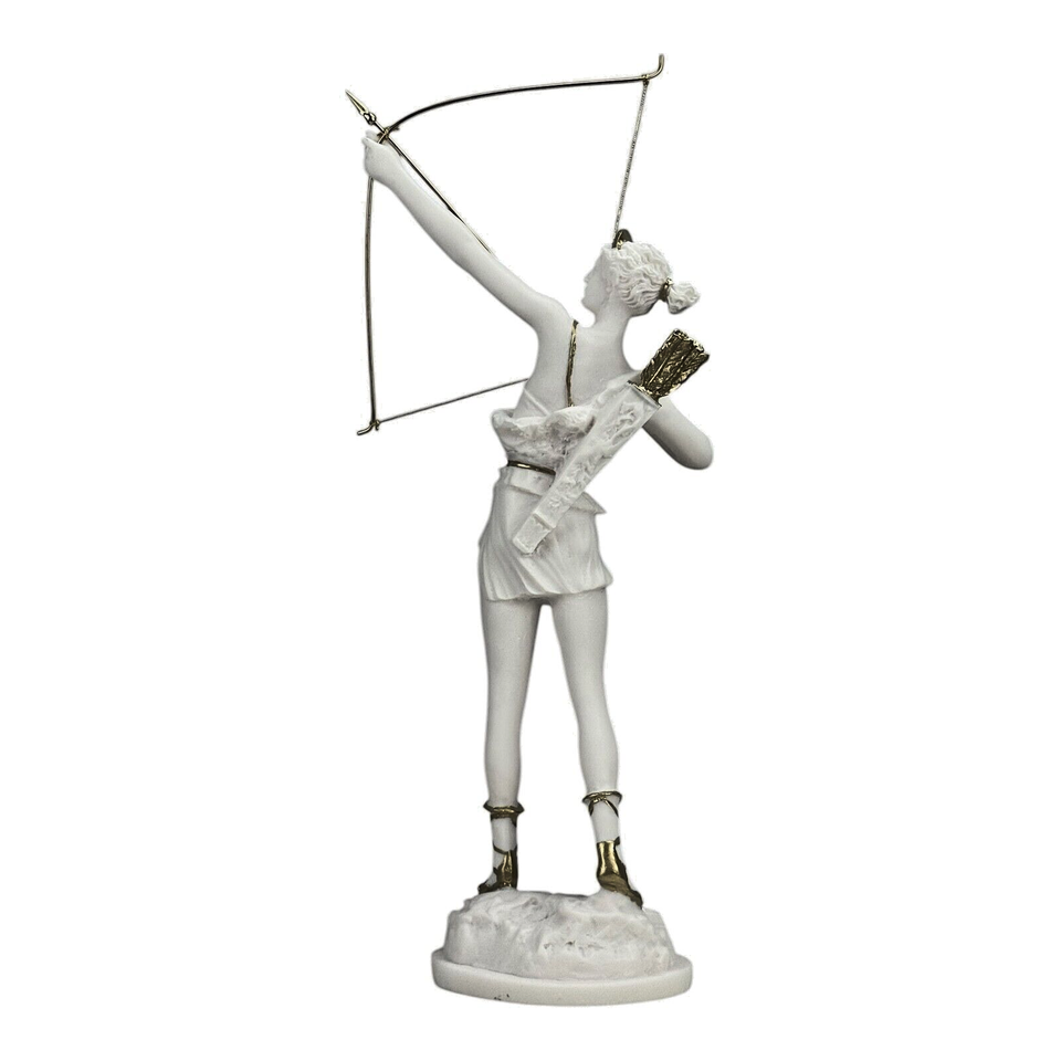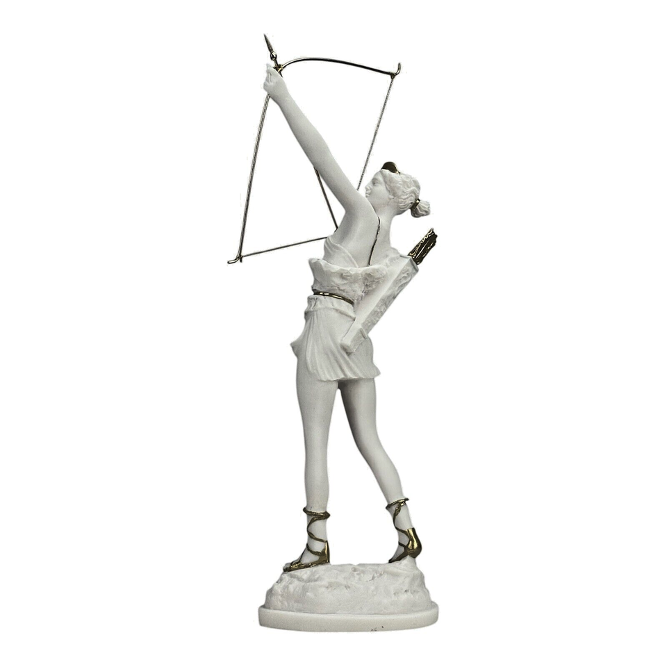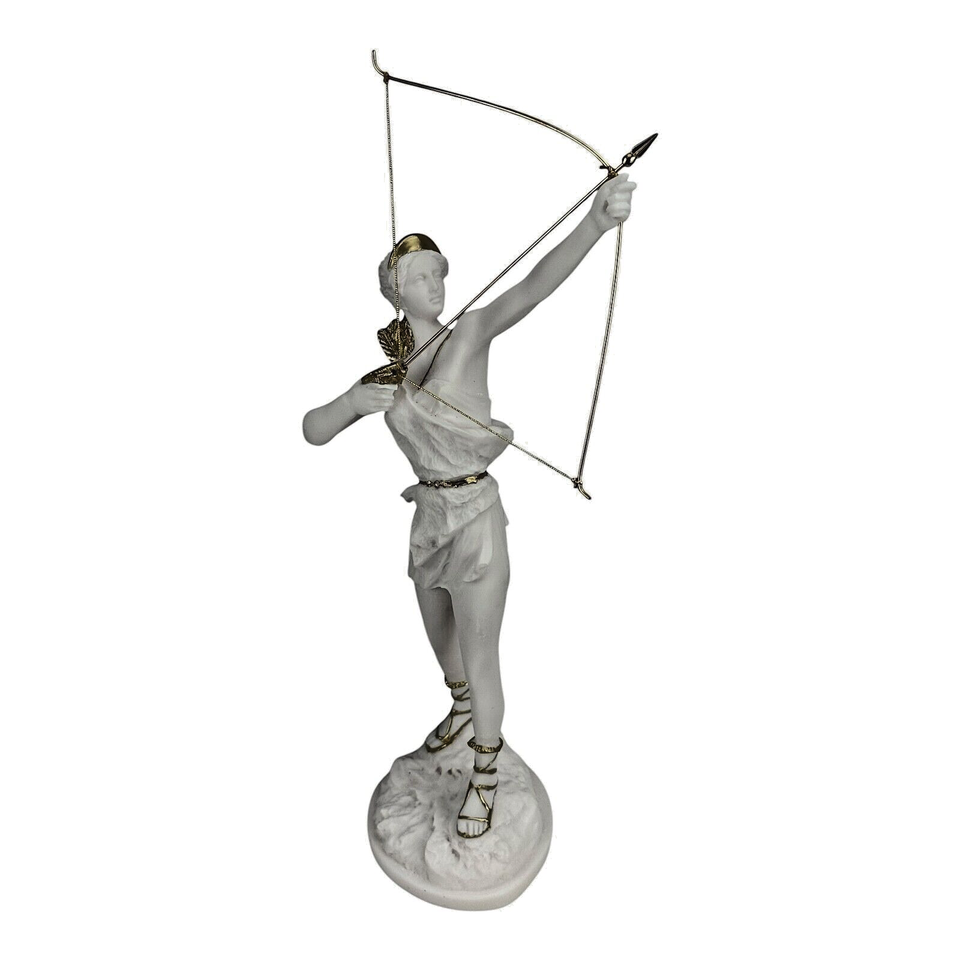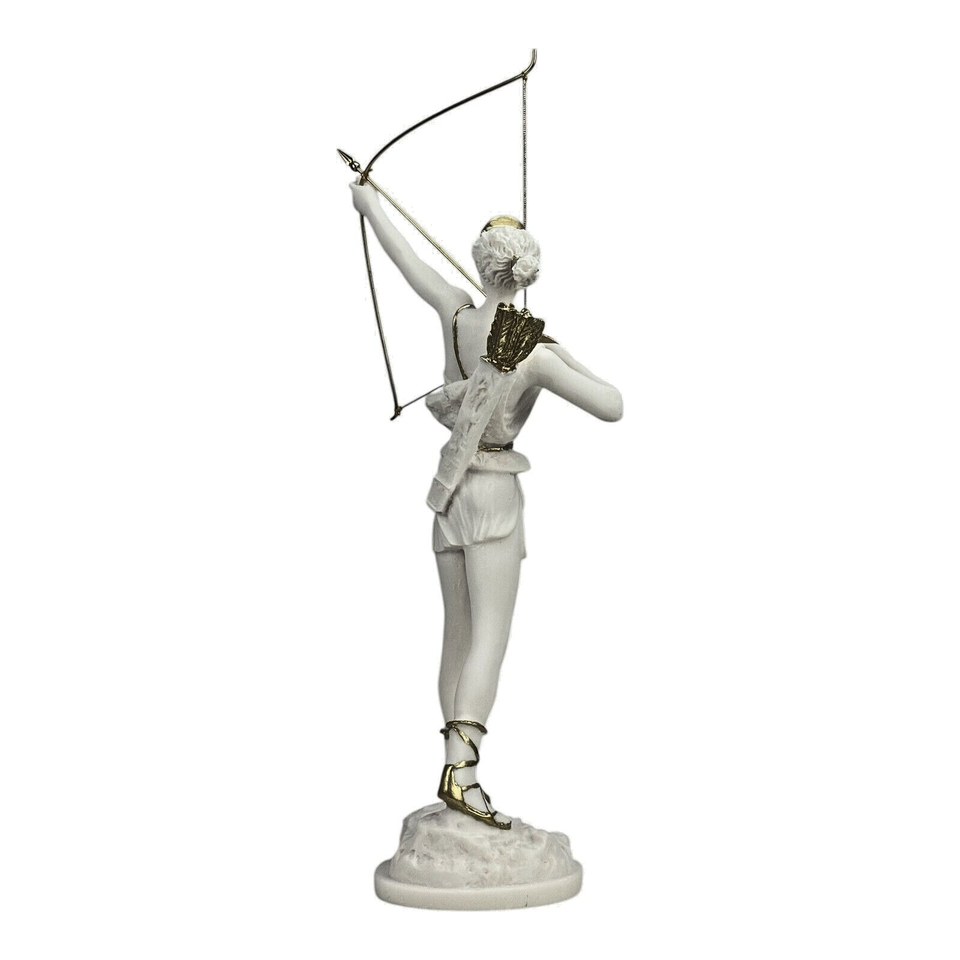 Artemis Diana with Bow Greek Roman Goddess Statue Sculpture Cast Marble Pure White with Gold Accents 15.9in
