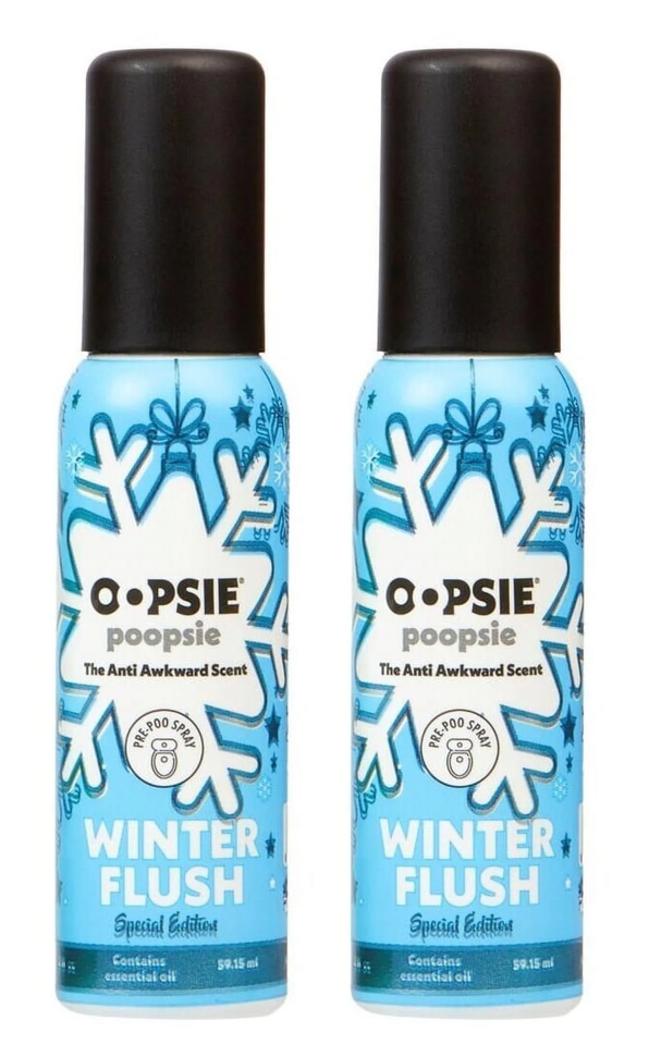 2- Oopsie Poopsie Bathroom Spray WINTER FLUSH Eliminate Smell of Poop Deodorizer