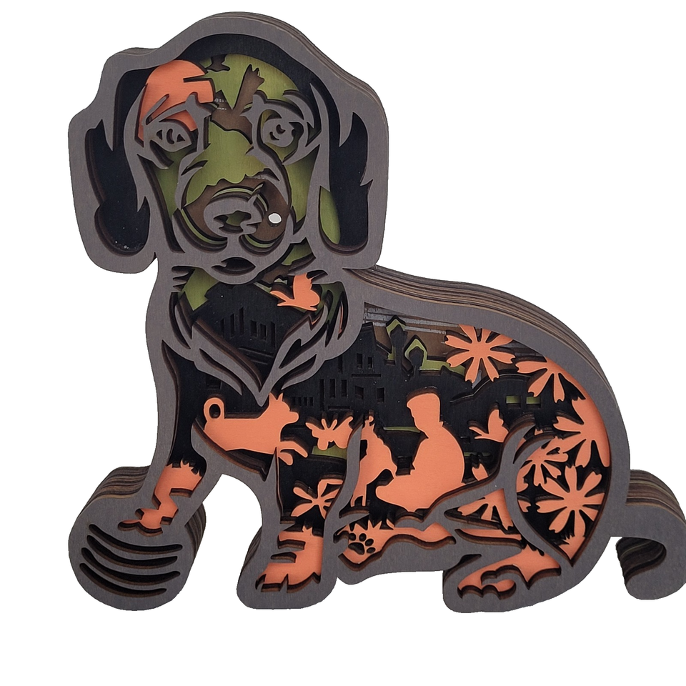 Capture the joyful energy and playful spirit of man's best friend with the Playing Dog, a charming handcrafted layered wood art piece. Made with care in Colorado, this delightful design features carefully layered sustainable wood, creating a dynamic 3D effect that brings the dog?s playful stance to life.