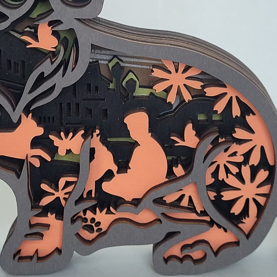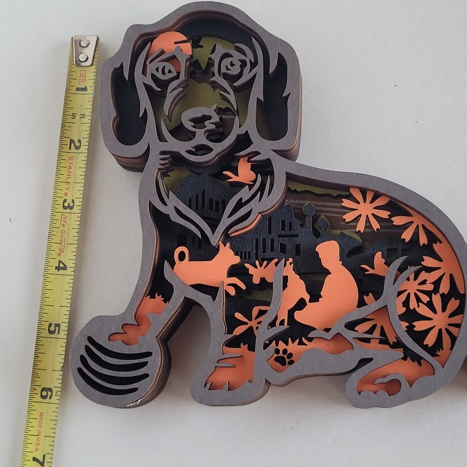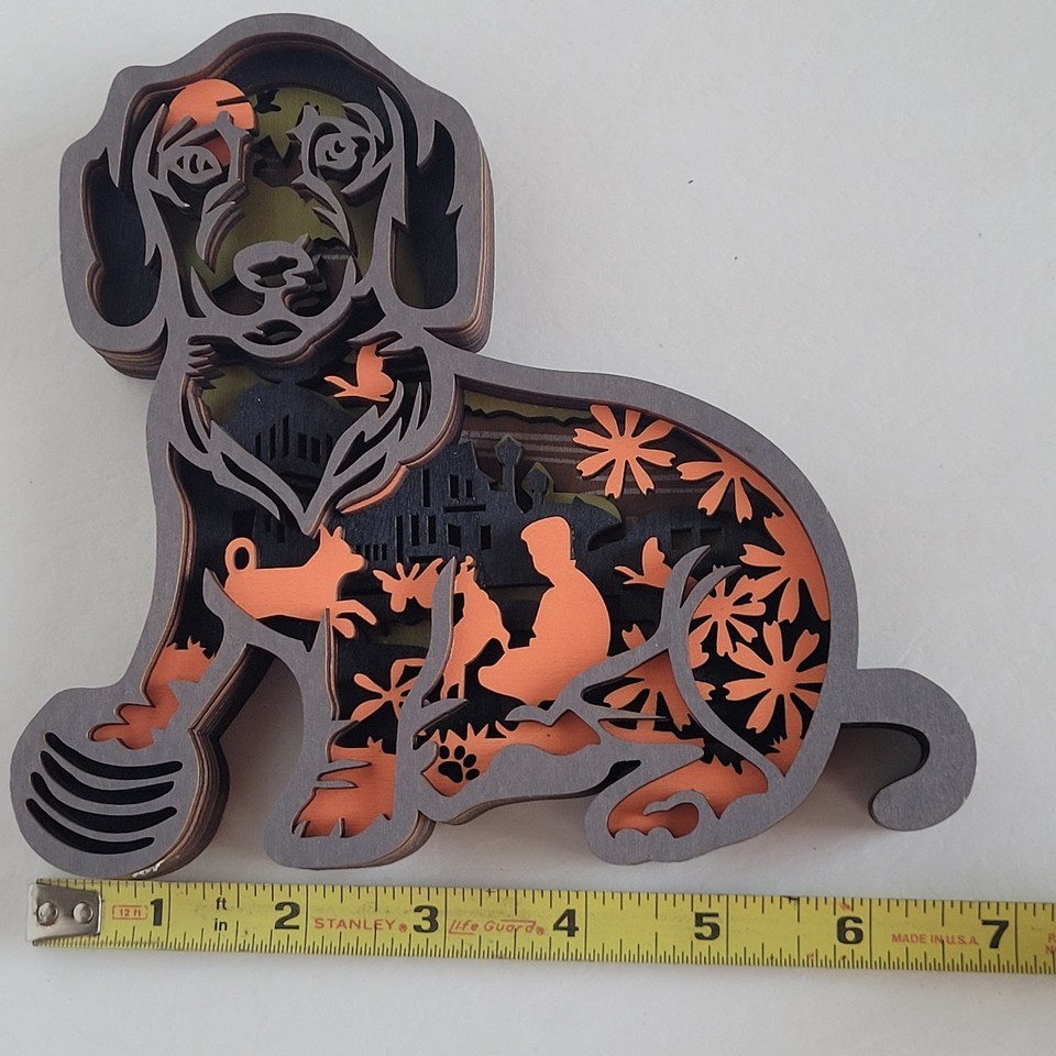 Playing Dog Handcrafted Layered Wood Wall Art Shelf 3D Scene Laser Cut Handmade