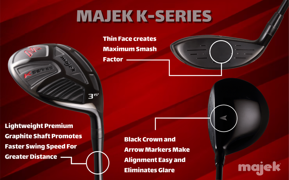 The Majek K-Series Driver and Fairway Woods was Co-Engineered by members of the UCLA's engineering department. This unique relationship and pure engineering approach created a high launch Driver and Fairway Woods that ensures MAXIMUM BALL FLIGHT. The extra thin face creates a greater trampoline effect upon impact; ensuring a maximum smash factor. The K-Series Driver and Fairway Woods is perfectly balanced and engineered to create a lower CG (Center of Gravity). Its sleek black plasma finish along with the lightweight premium graphite shaft promotes a faster swing speed for greater distance. Support A Local Company: Your Custom Made Majek K-Series Driver and Fairway Woods is Assembled By Hand in Riverside, CA, USA and Delivered Direct to Your Door.