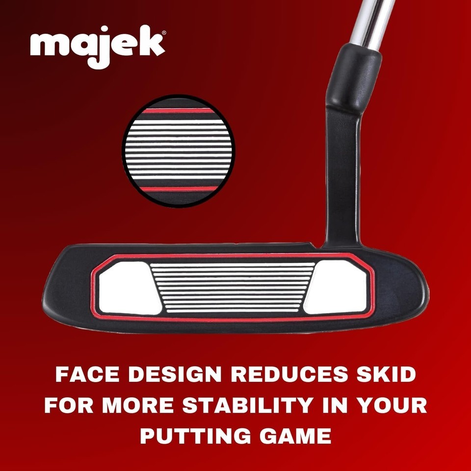 The Majek K5 P-200 Blade Putter has a perfect alignment system that will help you sink more putts. The rear of the putter head is weighted to a precise measurement to help increase MOI (Moment of Inertia) reducing miss-hits. You will also get a smooth forward spinning ball at impact with reduced skid giving you stability in your putting game. Our premium grip assures a non-slip surface pattern for maximum comfort, playability, consistency and confidence. Get ready to reduce your score for the round with the Majek K5 P-200 Blade Putter!