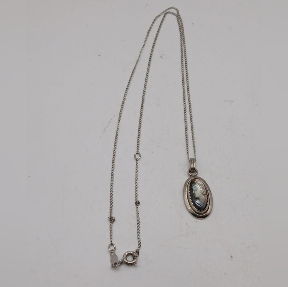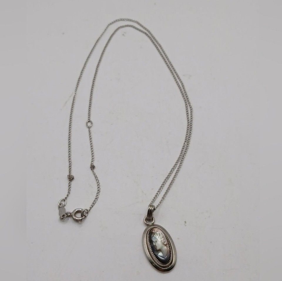 Vintage Sarah Coventry Sterling MOTHER of PEARL CAMEO Necklace from 1969