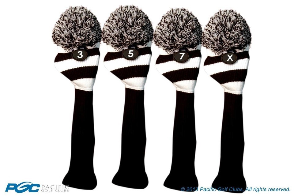 3 5 7 X Classic BLACK WHITE KNIT POM golf club Headcover vintage Head covers Set