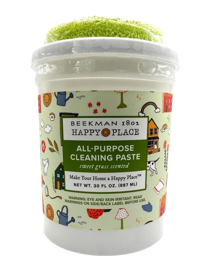 Keep your home spotless with the Beekman 1802 Happy Place All-Purpose Cleaning Paste. This versatile cleaning paste is perfect for multi-use and comes in a convenient 30oz tub. The sweet grass scent makes cleaning a delight, and the paste is made with high-quality ingredients for top-notch performance.