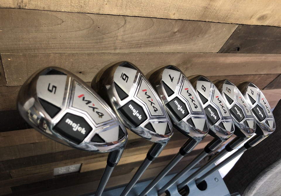 Replace your entire difficult to use iron set with the Majek MX4 all hybrid iron set! The MX4 was Co-Engineered by members of the UCLA's engineering department. This unique relationship and pure engineering approach created the Majek MX4 all hybrid iron set. The all Hybrid design gives you more weight position behind the "Sweet Spot". The thin forged steel face provides a more trampoline effect which leads to added distance on all lofts. Stainless sole of the iron bodies are positioned with more weight to make getting the ball airborne easier. The lightweight premium 100% Graphite Shaft creates a faster swing speed for greater distance. Replace those old hard-to-hit irons with these game-changing MX4 hybrid irons!