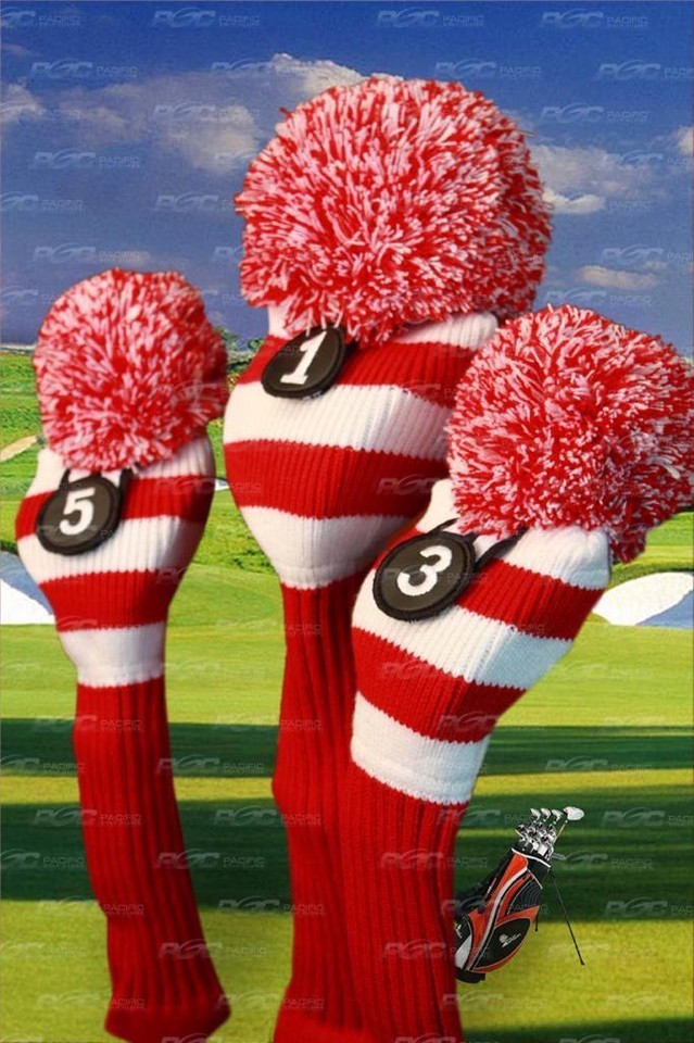 1 3 5 Majek RED WHITE Pom Pom golf clubs Headcover Head covers Set reds colors