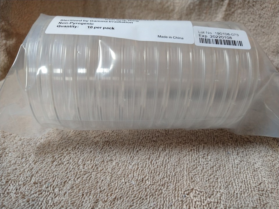 One package of 10 petri dishes. New in sealed packages. Date is Expired. Could be used for many other things beyond scientific purposes: Halloween Props for a Haunted Mad Scientist Laboratory, Halloween or a Science Theme Treat Party Favors, Storage Containers for beads or other small objects, etc.