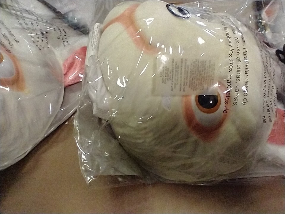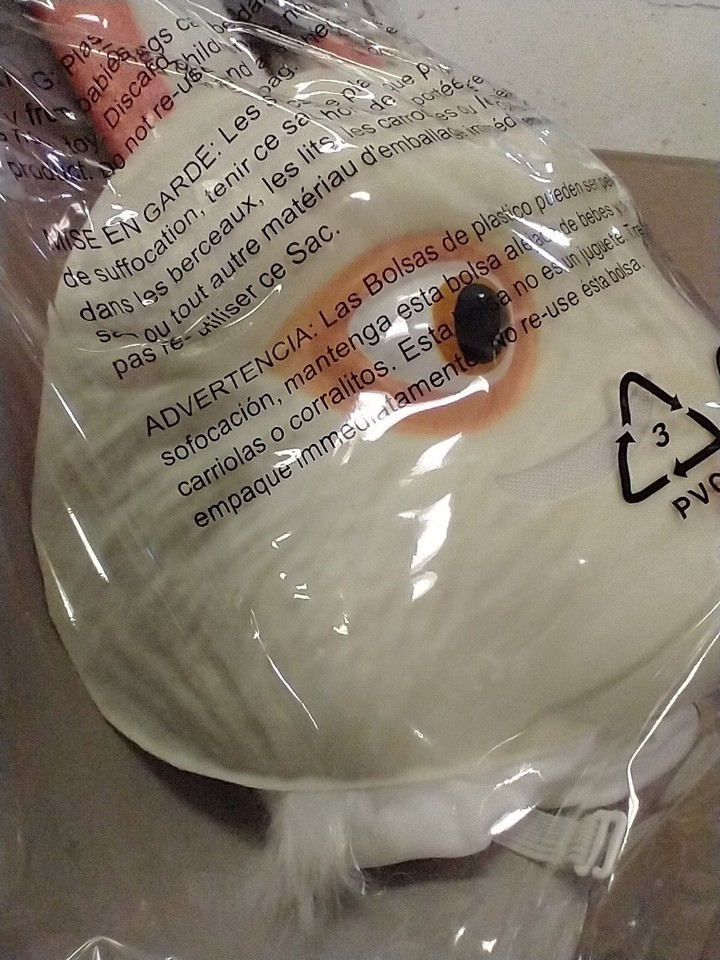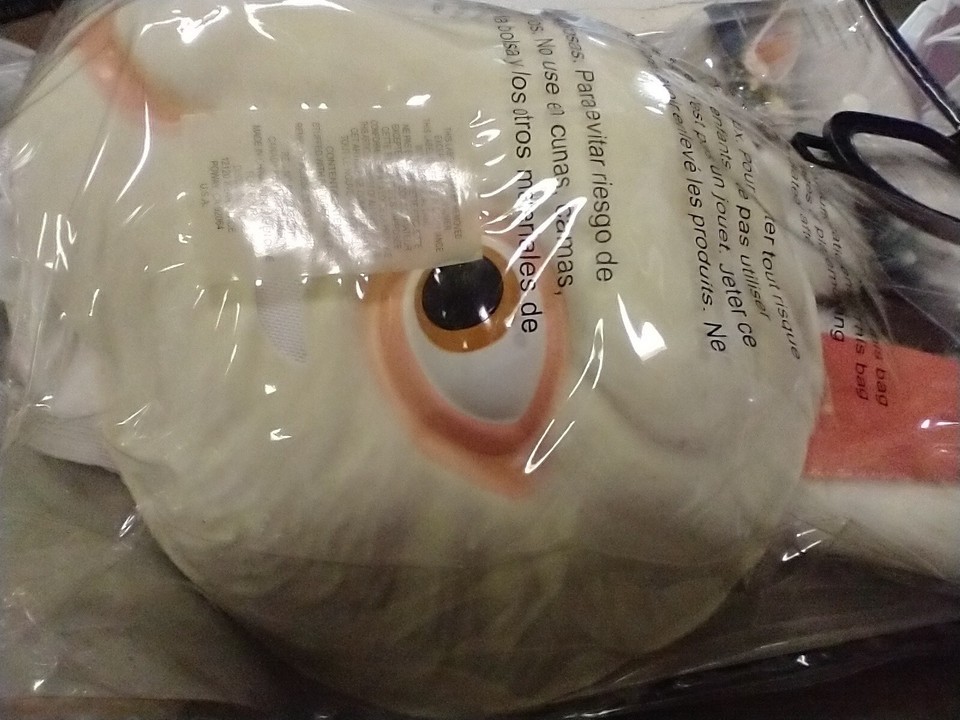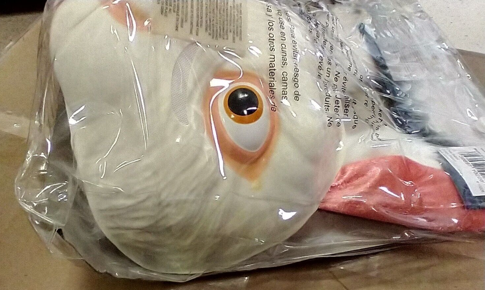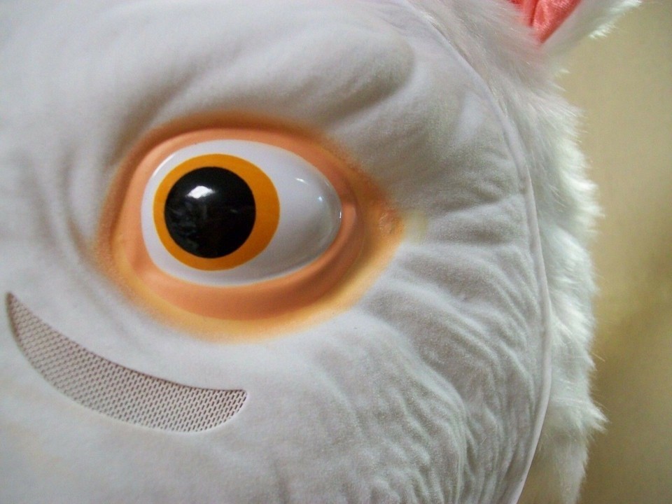 ADDITIONAL NOTES: The plastic face part is discolored and has yellowing. Some are worse than others. The mask has a fuzzy feel to it. I am guessing that whatever was used to attach the fuzzy stuff to the plastic is the cause of the yellowing. The Plush hood Ear part could be worn without the mask. Photos shown of what it should look like and then the yellowing. Please see all photos. Sold As Is