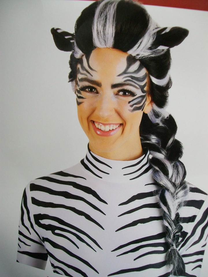 Black & White Zebra Costume Wig Braided with Ears Zoo Animal Wildlife Safari NEW