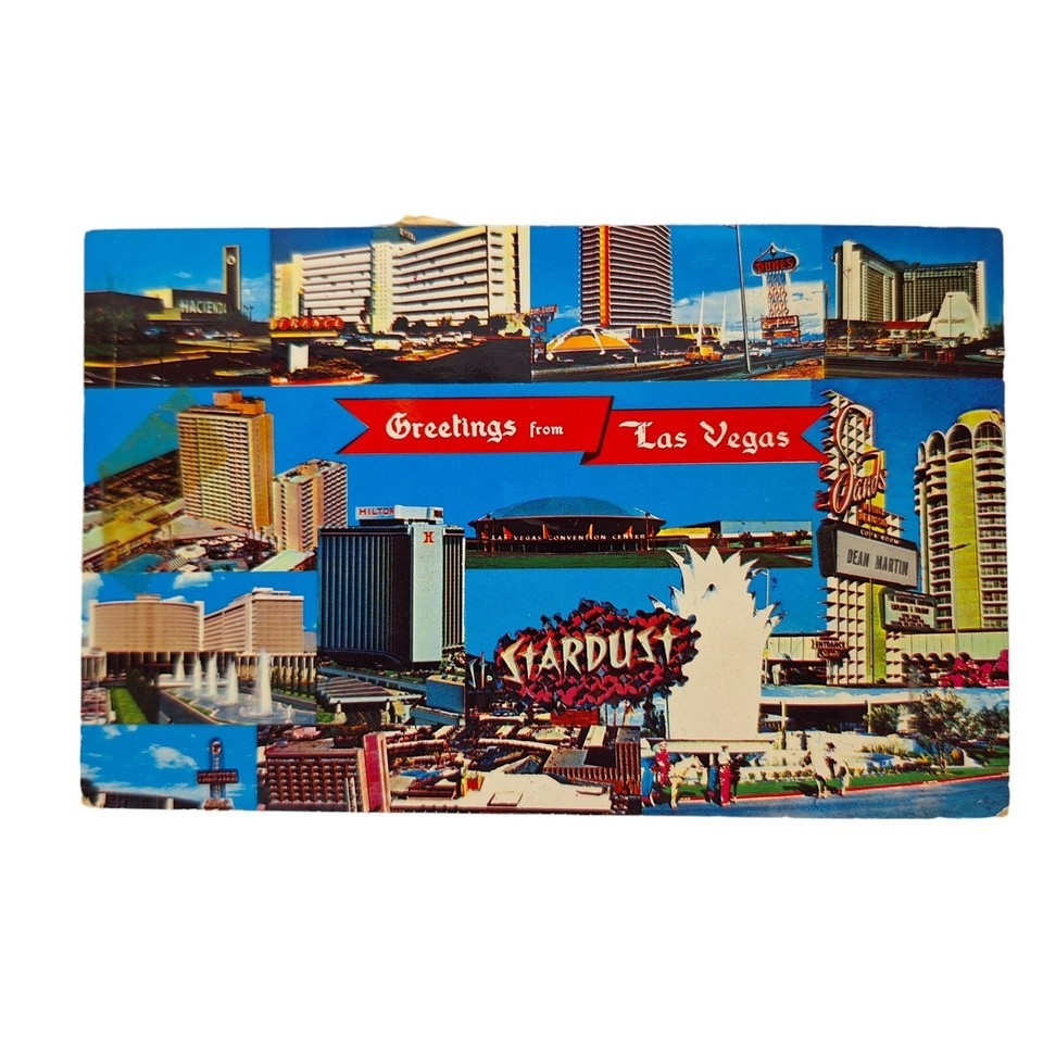 Postcard Greetings From Las Vegas Casinos Dunes Sands Stardust Frontier Chrome