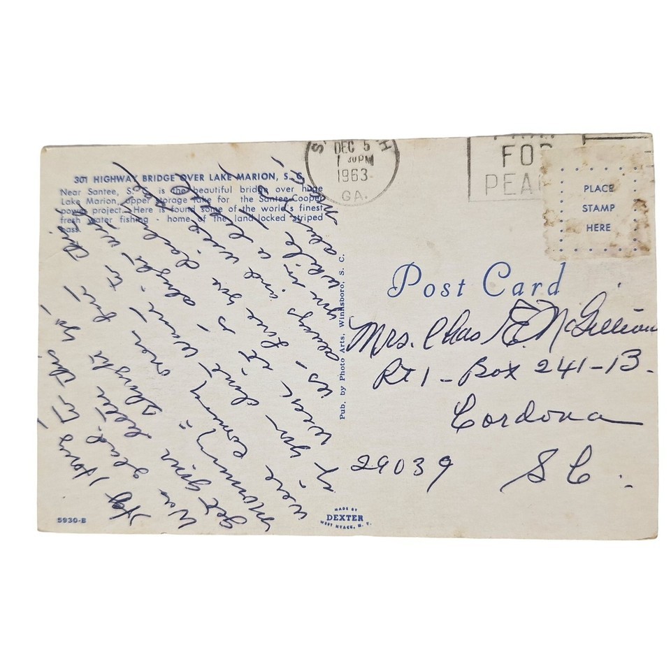 Postcard 301 Highway Bridge Over Lake Marion and 40 similar items