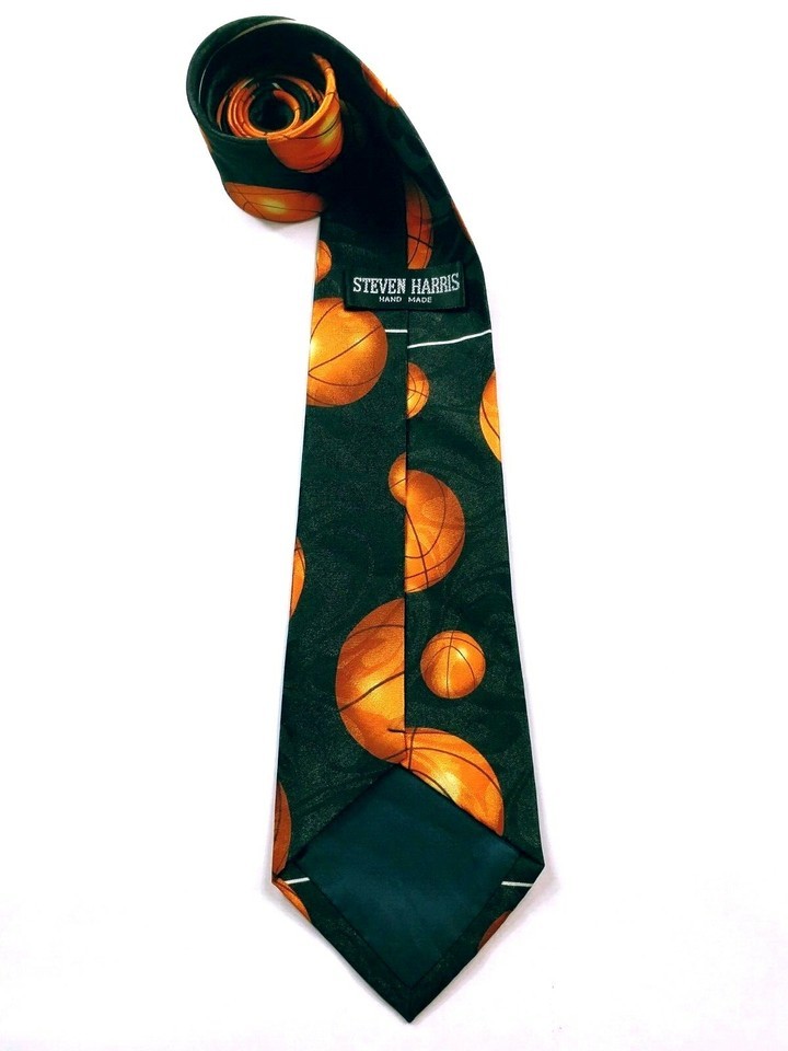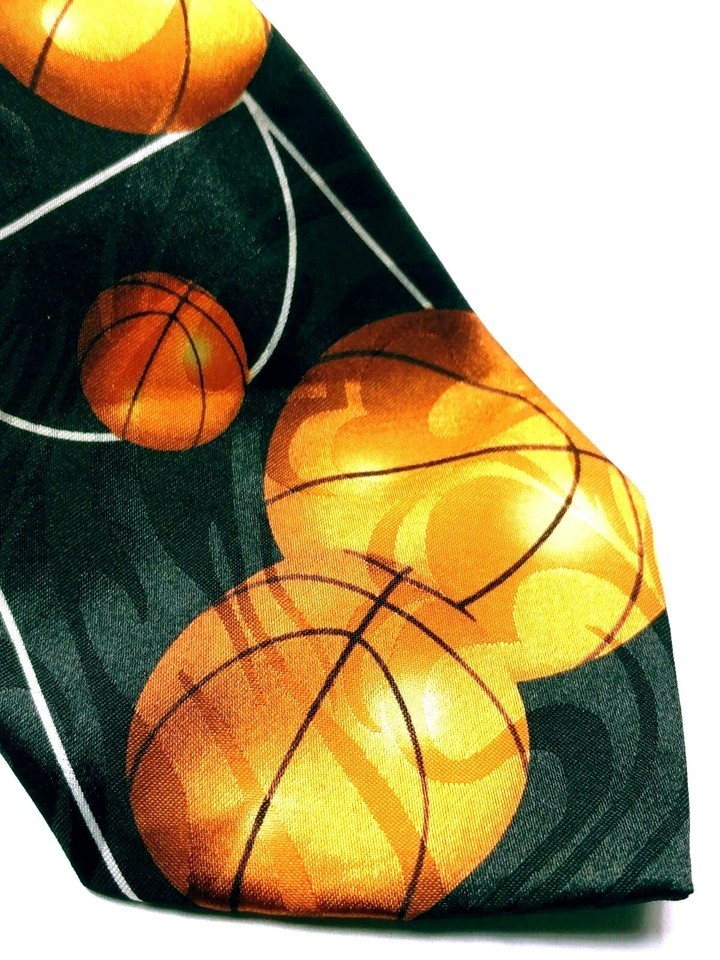 Basketball Court Sport Black Orange Men's Necktie Novelty