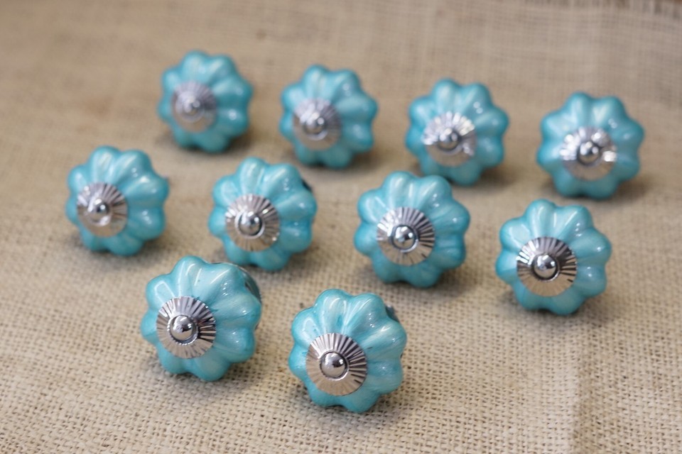 10 CERAMIC AQUA BLUE KNOBS! SALE INCLUDES 10 KNOBS!