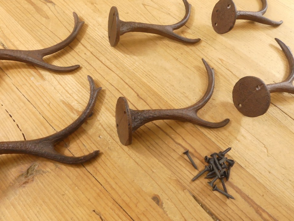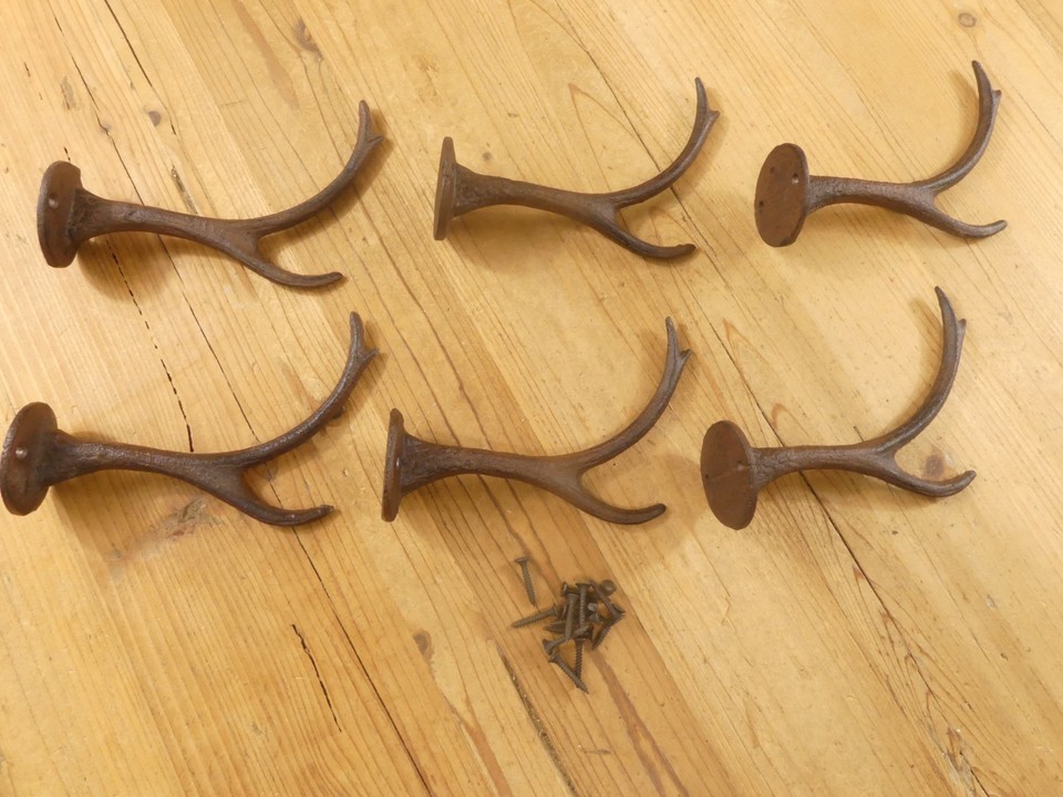 6 Cast Iron Antler Hooks Deer Elk Coat Hat and 50 similar items