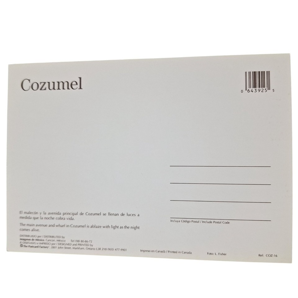 Postcard Night Time Main Avenue Wharf Cozumel Mexico Chrome Unposted
