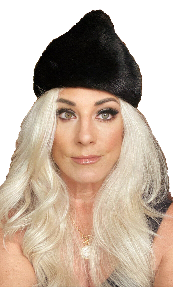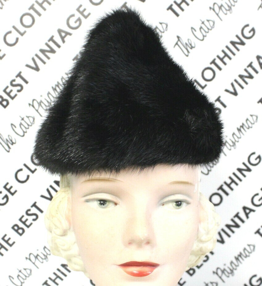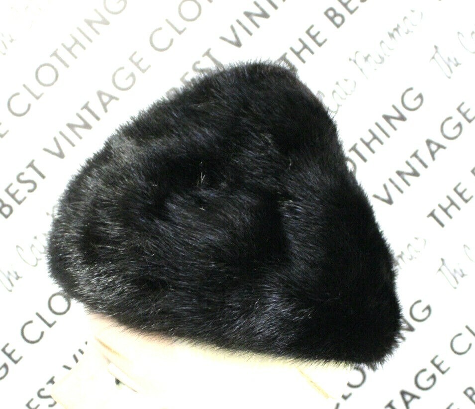 WOMENS Black MINK FUR HAT Berger's Buffalo Peaked Hershey Kiss shape