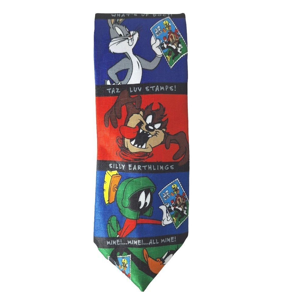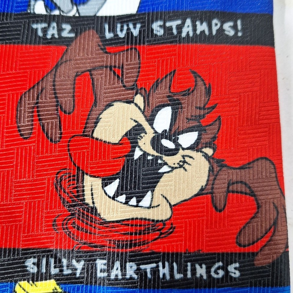 Vintage 1997 Looney Tunes Stamp Collection Bugs Taz Daffy Novelty Necktie