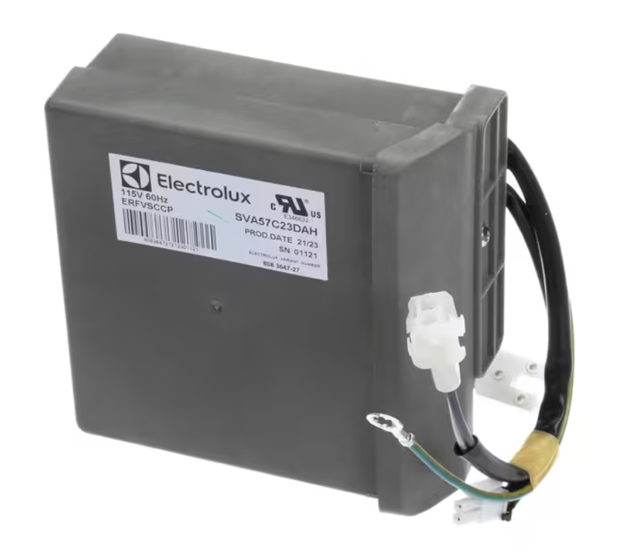 The Frigidaire ERFVSCCP / SVA57C23DAH / 808 3647-27 Inverter Board, 115V, 60Hz, Refrigerator is a genuine OEM replacement part that controls the variable speed operation of your refrigerator?s compressor. By regulating compressor speed, the inverter ensures consistent cooling, quieter performance, and improved energy efficiency. If your refrigerator is not cooling properly, cycles irregularly, or the compressor does not run, replacing the inverter board can restore dependable functionality.