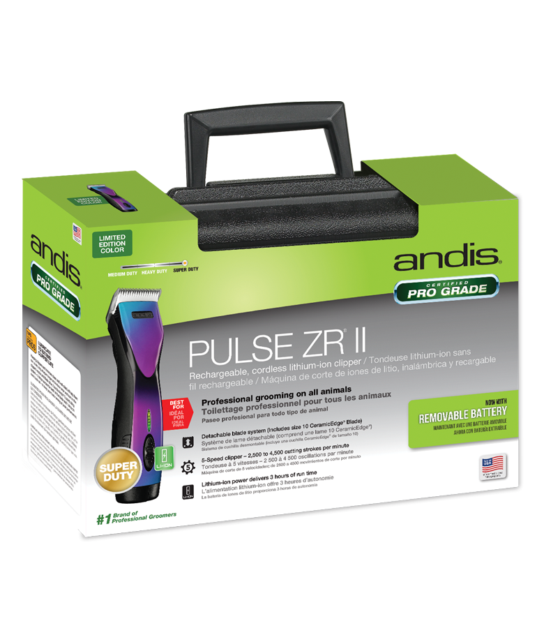 The Andis Pulse ZR II has been impeccably designed to meet the highest standards of the most experienced groomers. The powerful 5-speed motor and versatile cordless design has been engineered to provided groomers with the precision needed for trimming any type of coat to perfection with elegance and ease. The removable Lithium-Ion battery allows simultaneous charging of an additional battery (sold separately).