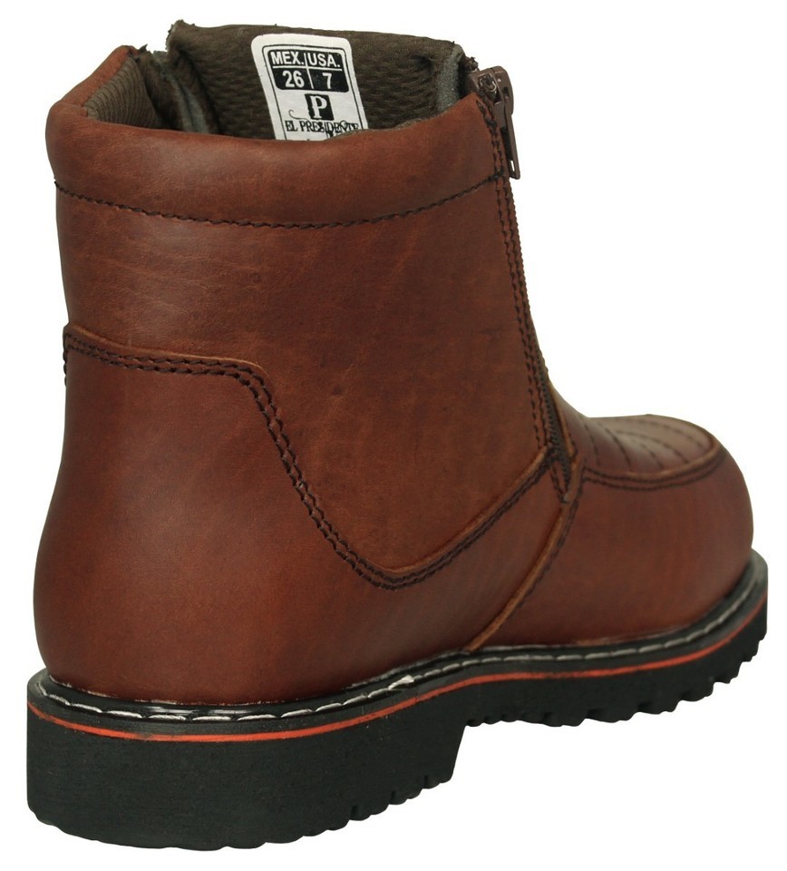 Mens Chedron Work Boot Genuine Leather Slip Resistant Zip Up Ankle High Soft Toe