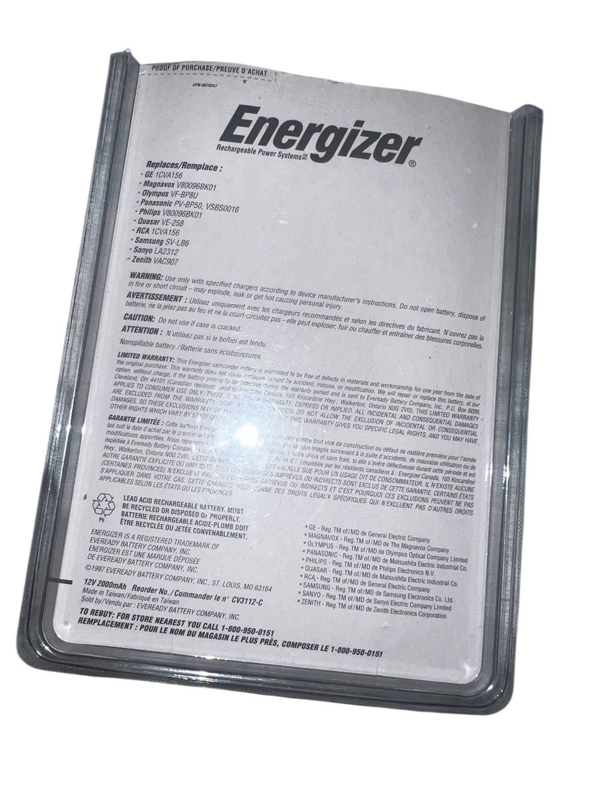 Energizer CV3112 Rechargeable 12V 2000mAh Battery System New NOS