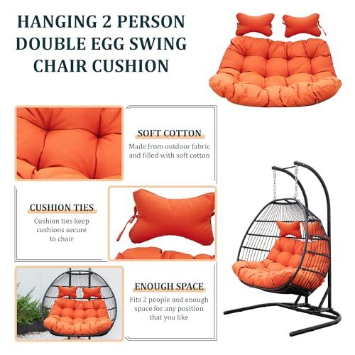 LeisureMod Modern Upholstered 2 Person Hanging Egg Swing Cushion with Headrest L