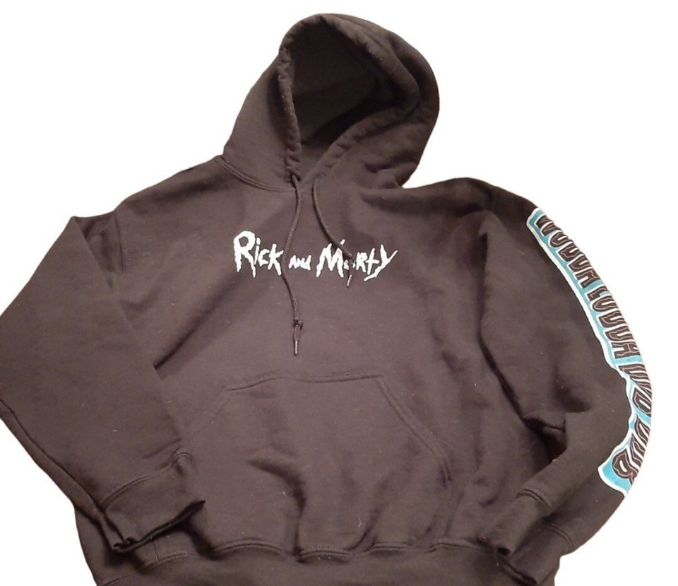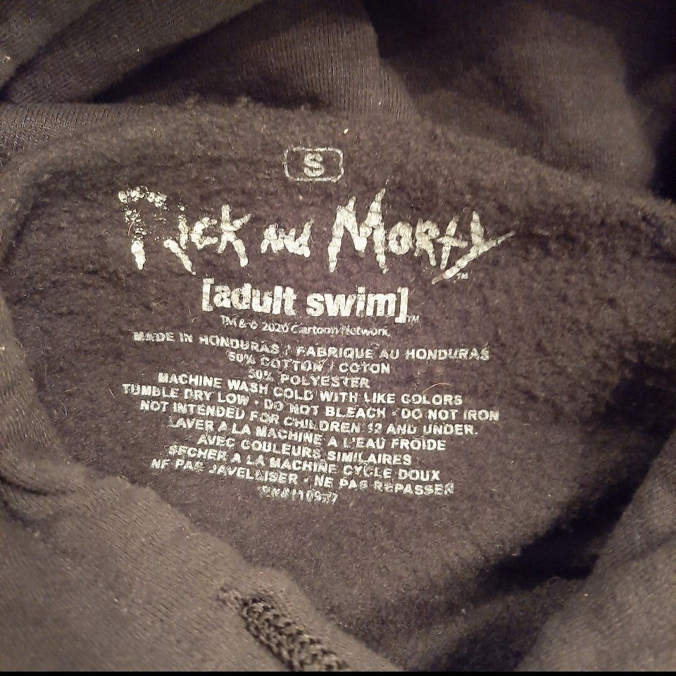 Rick and Morty Mens Small Black Graphic Hoodie Sweatshirt - Adult Swim Pullover