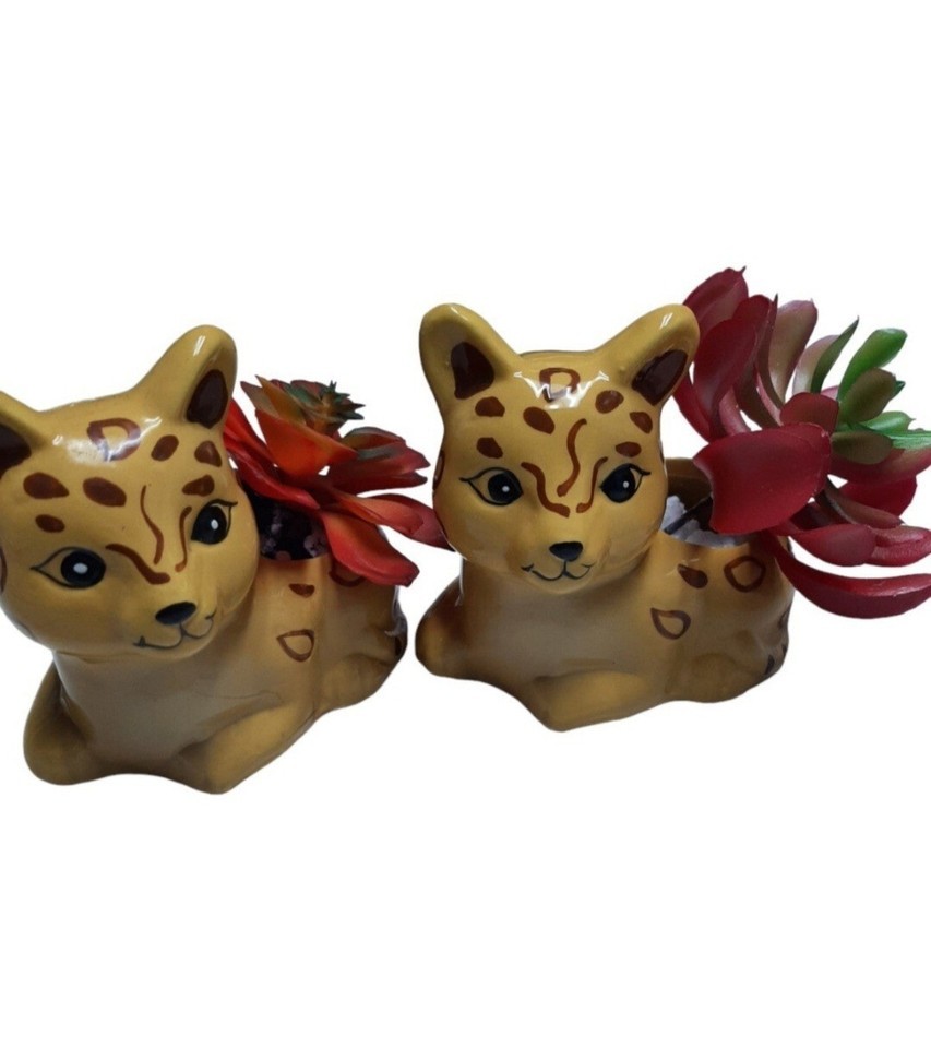 Jay The Jaguar Ceramic Animals (2) Cute Mini Succulent Planters, Yellow