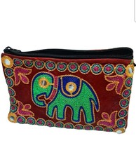 Boho Elephant Clutch Purse Embroidered Handmade Gypsy Wallet Festival Bag 7.5x4