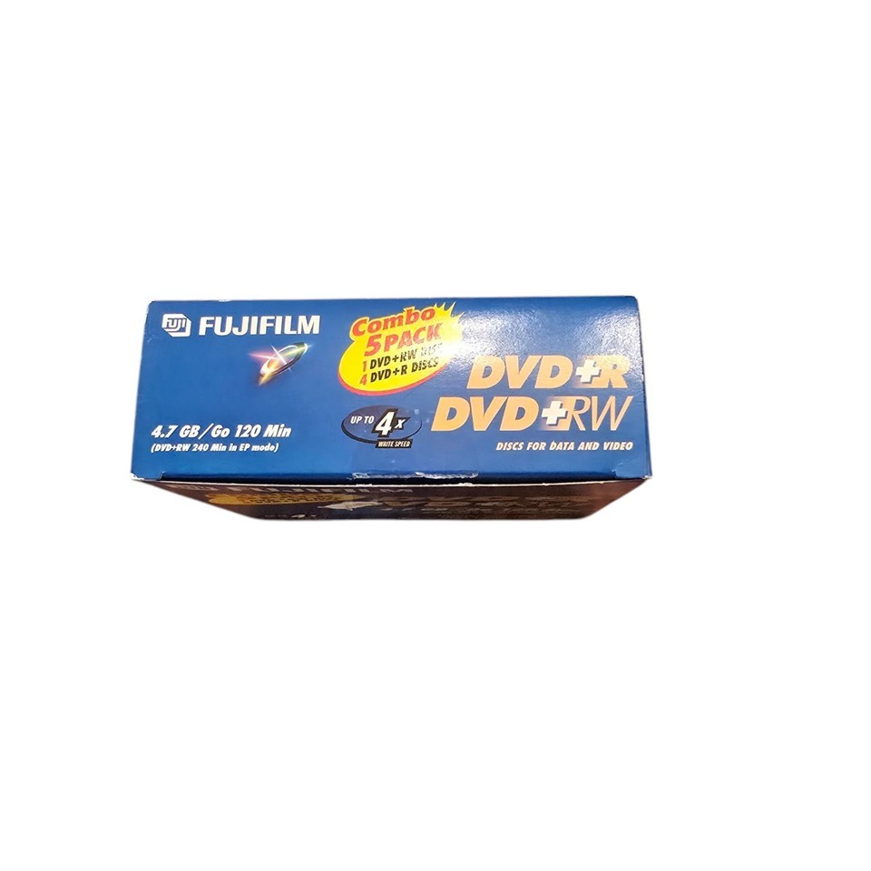 Rediscover the charm of early 2000s digital media with this vintage Fujifilm Combo 5 Pack of DVD+RW and DVD+R discs. Each 4.7GB disc is perfect for backing up data, recording video, or preserving classic digital projects. Whether you're a media collector, tech enthusiast, or simply seeking authentic retro storage, these discs offer both functionality and nostalgic appeal. Unused and in original packaging, this set is a rare find for collectors of vintage tech.