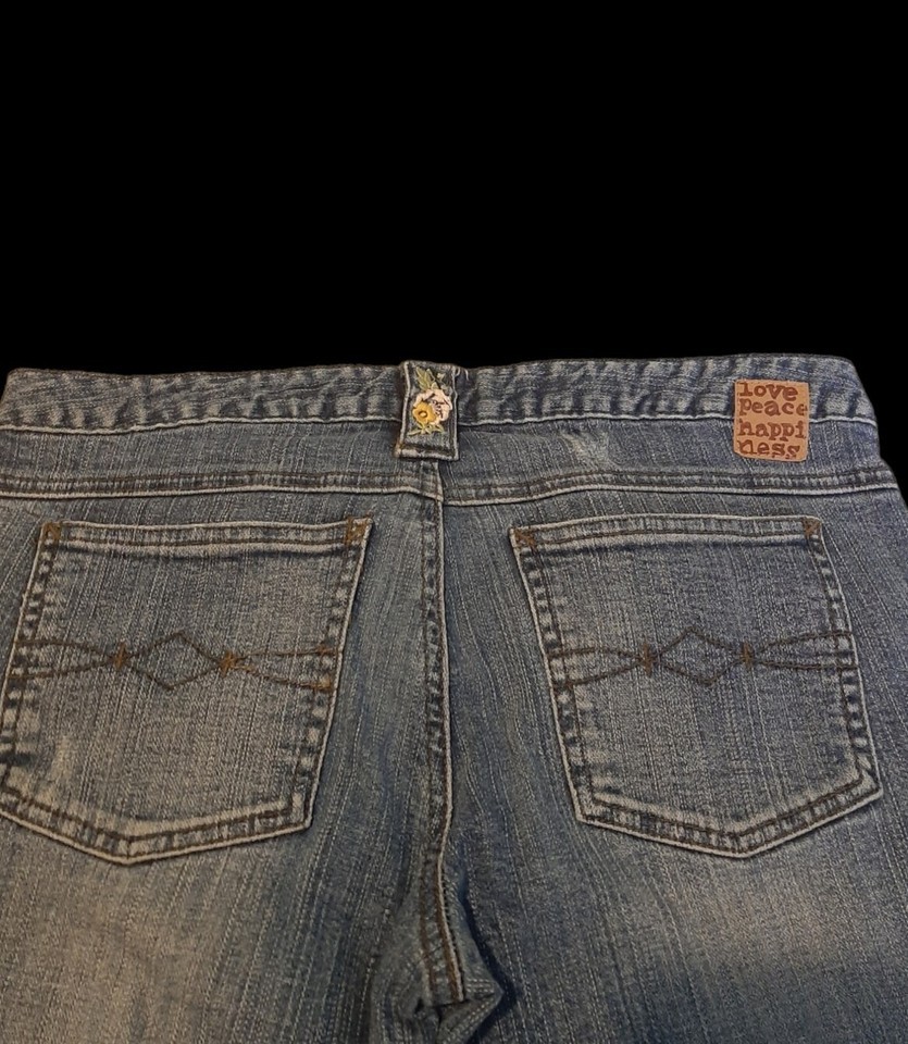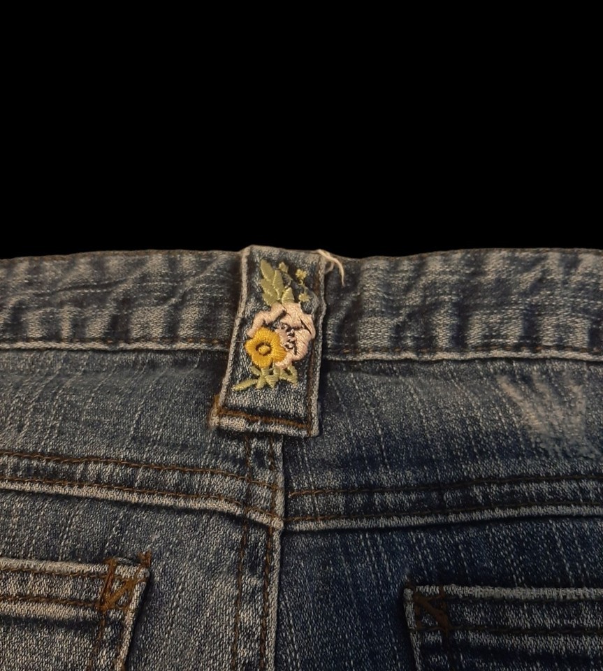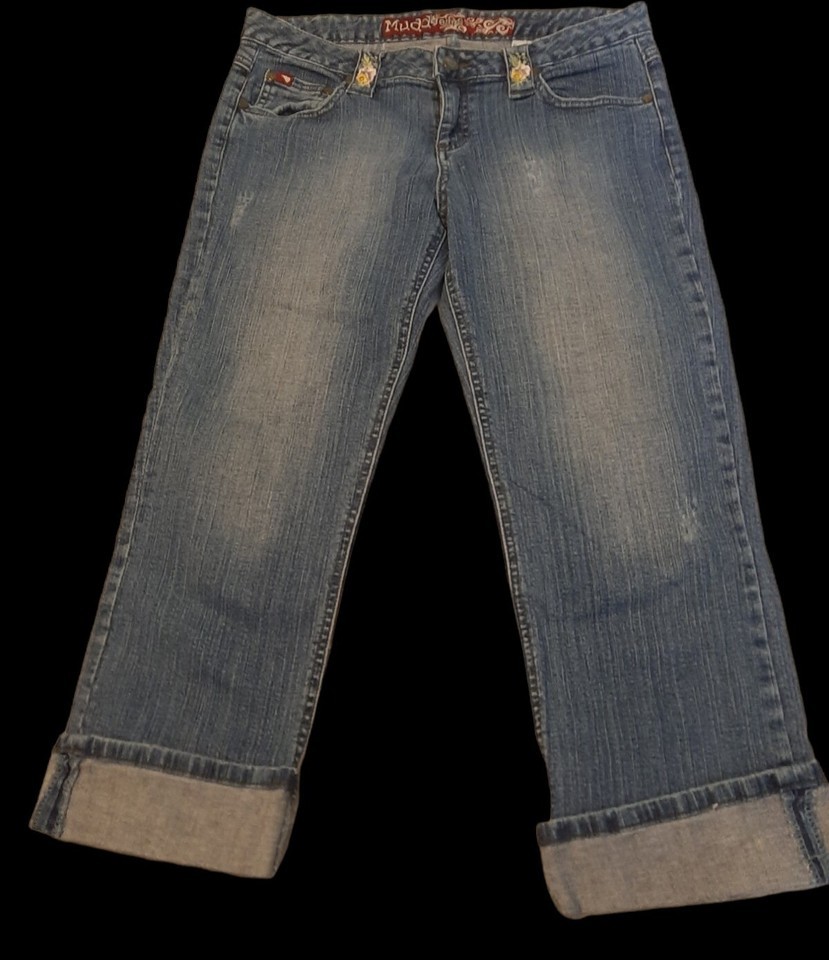 These Mudd capri jeans feature a solid pattern with embroidered accents, a zip closure, and a classic 5-pocket design. They are made of a cotton blend jean fabric and are machine washable for easy care. The waist size is 29 inches and the size is juniors 9, fitting women or girls size 6-9.